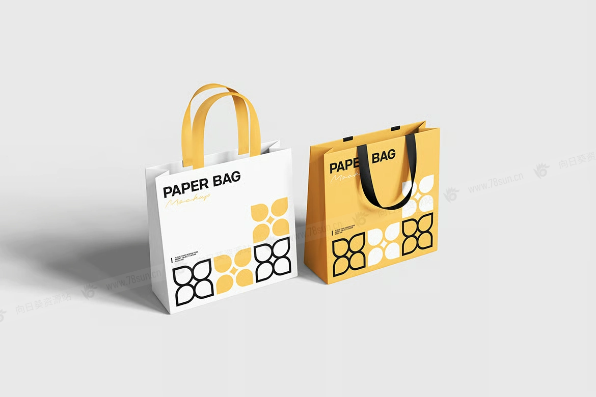 纸质手提袋购物袋品牌VI效果图展示智能贴图psd设计样机。使用智能对象轻松替换为您的设计,双击智能图层,复制并粘贴您的图稿。 包含精心组织的 PSD 文件,具有结构良好的图层。