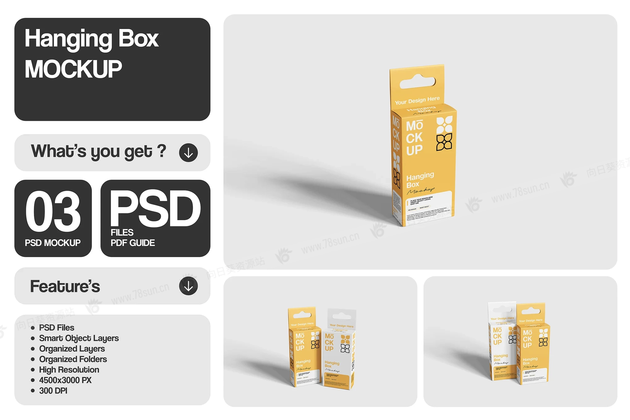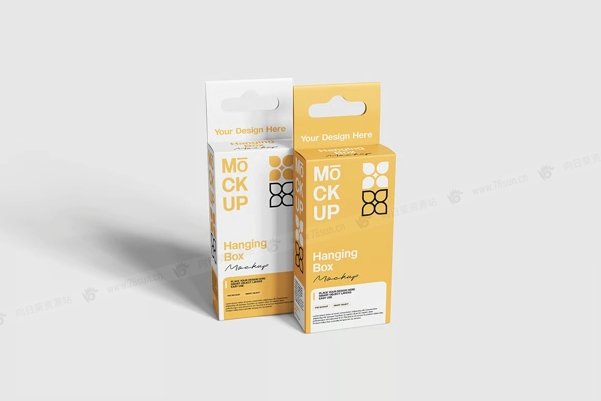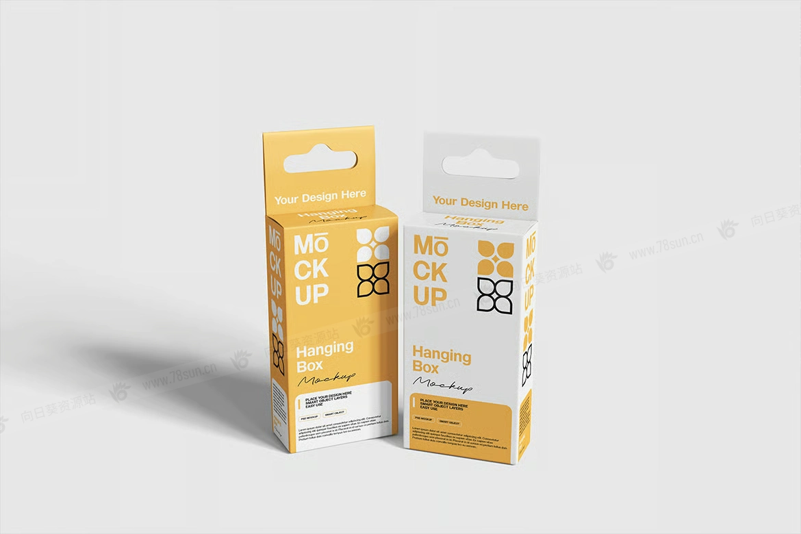 矩形挂盒吊箱挂钩纸盒品牌VI效果图展示智能贴图psd设计样机。使用智能对象轻松替换为您的设计,双击智能图层,复制并粘贴您的图稿。 包含精心组织的 PSD 文件,具有结构良好的图层。