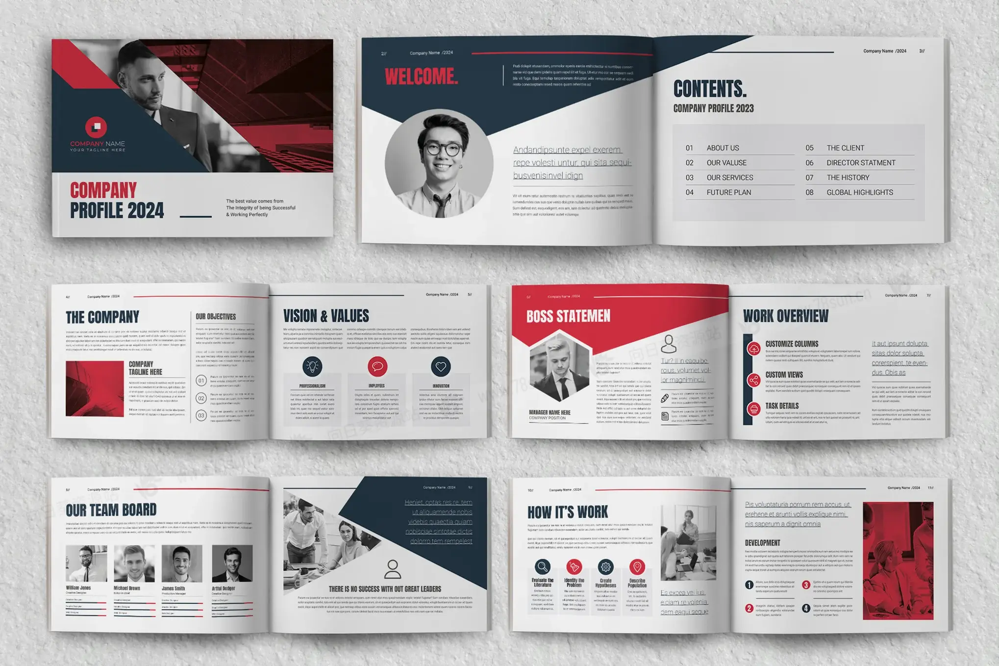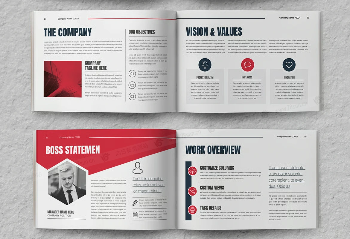 公司简介项目提案小册子杂志宣传册画册indd设计模板,以突出显示有关您的公司、产品、服务和团队的关键信息。
