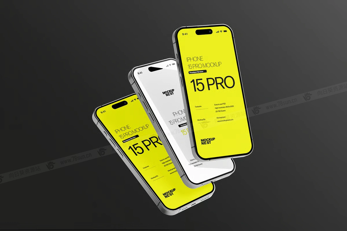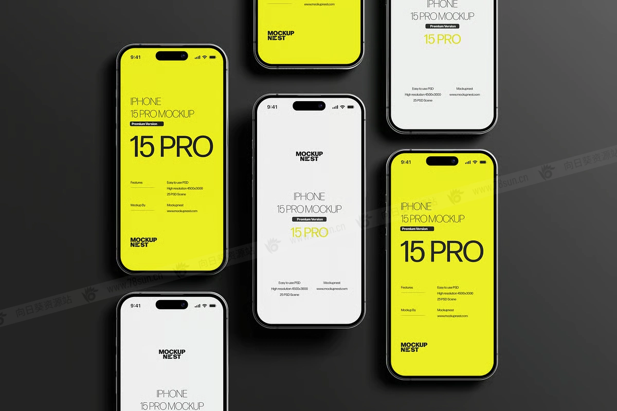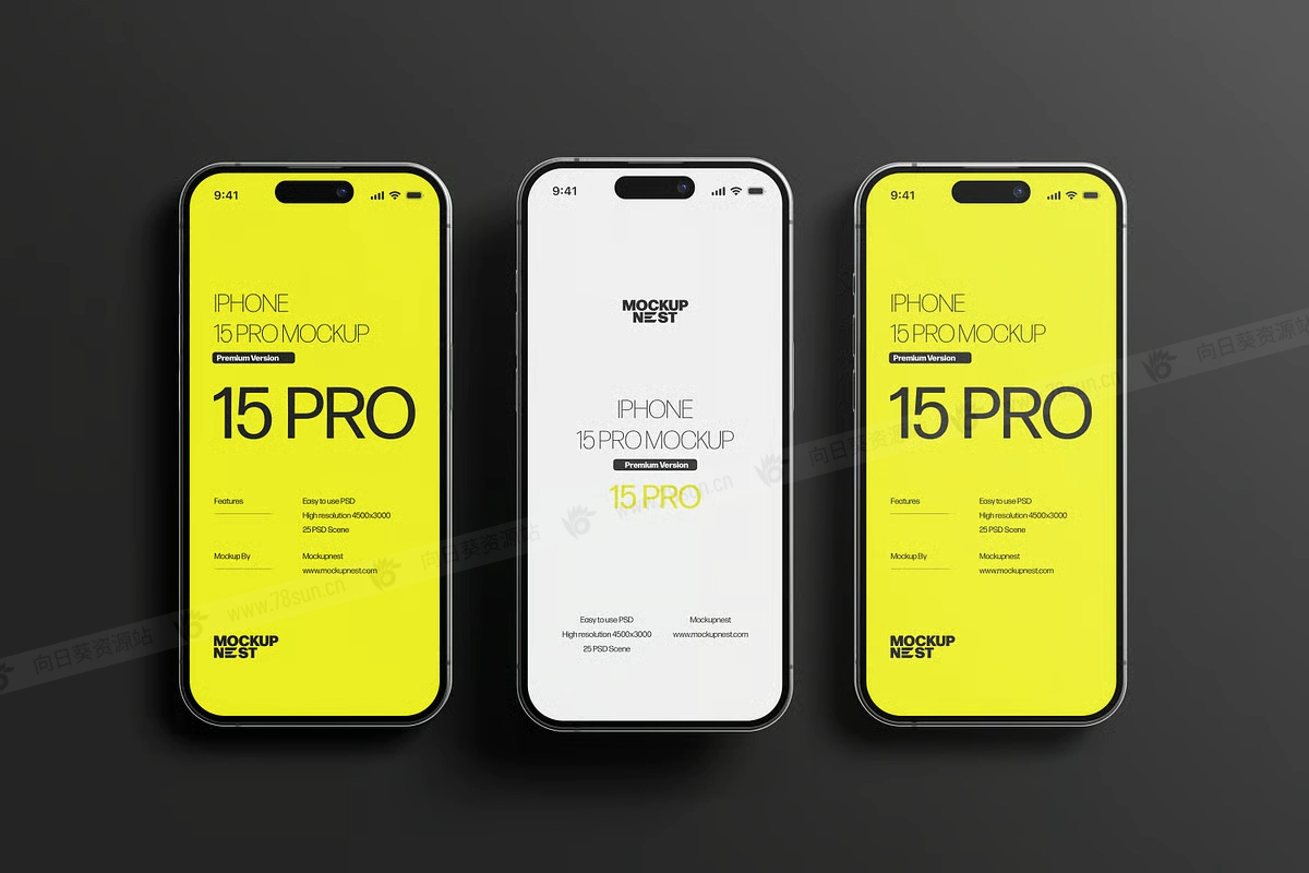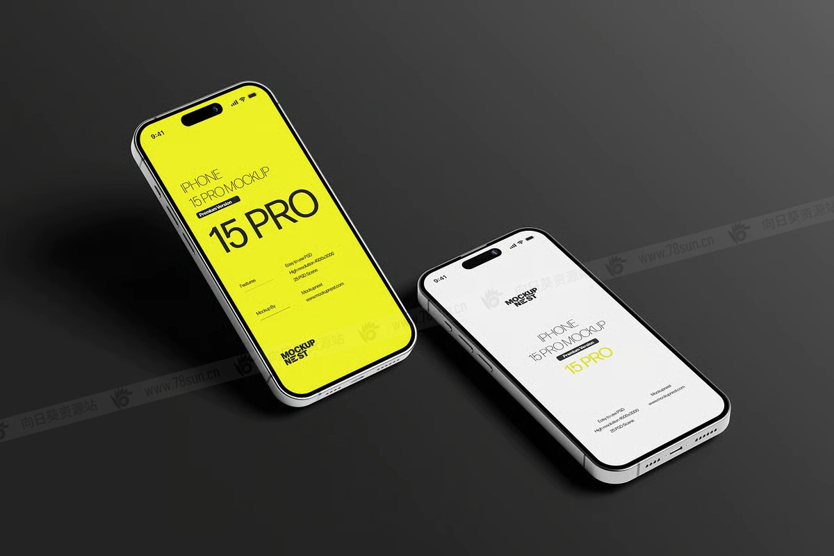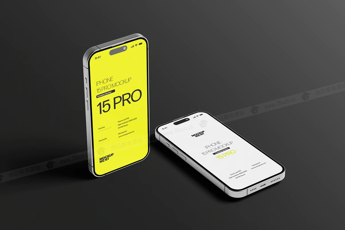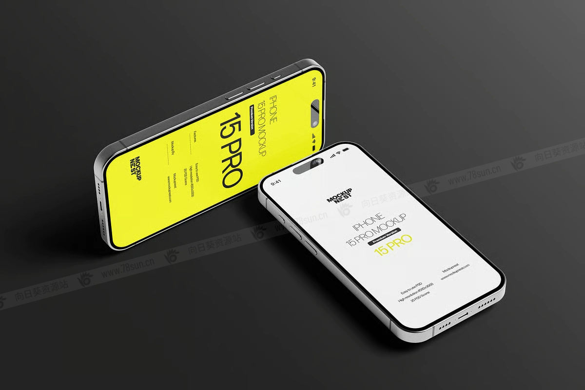 iPhone 15 Pro苹果手机UI效果图展示智能贴图psd设计样机,