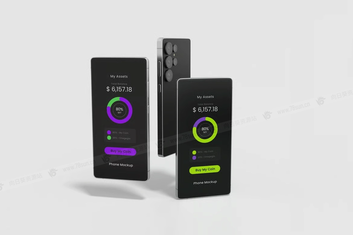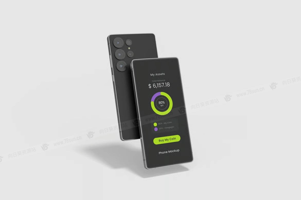 安卓智能手机UI效果图展示智能贴图psd设计样机。以 PSD Photoshop 格式提供,具有智能对象功能,可帮助您在几秒钟内将当前设计替换为您自己的设计。