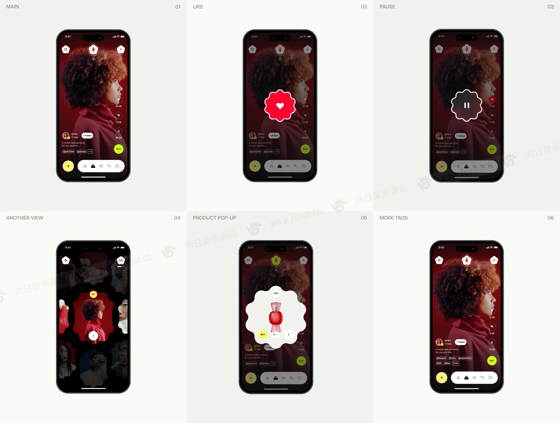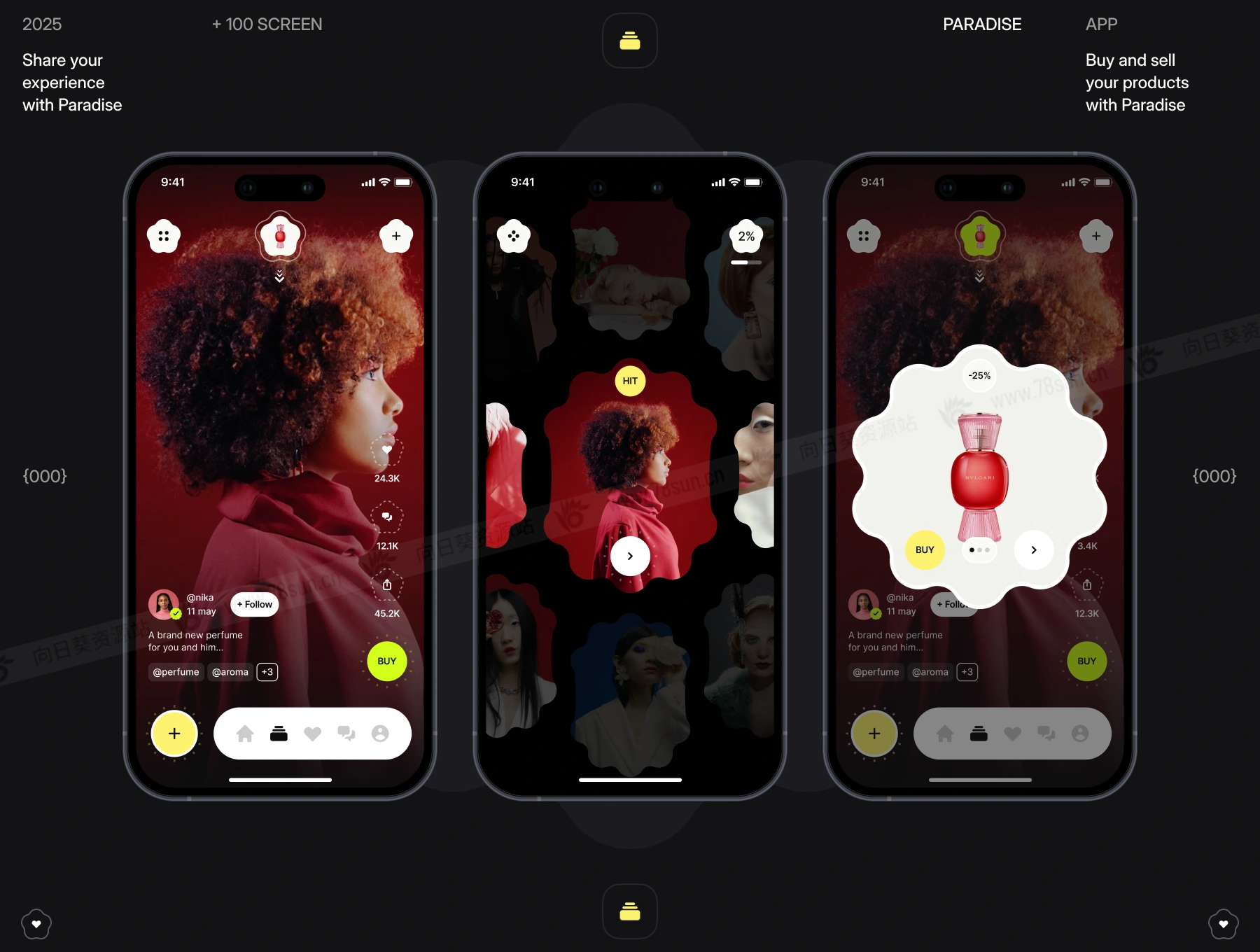 视频直播卖货销售app ui界面设计fig源文件模板,基于 + 100 个 Paradise 组件和屏幕创建用于在线销售的移动应用程序。