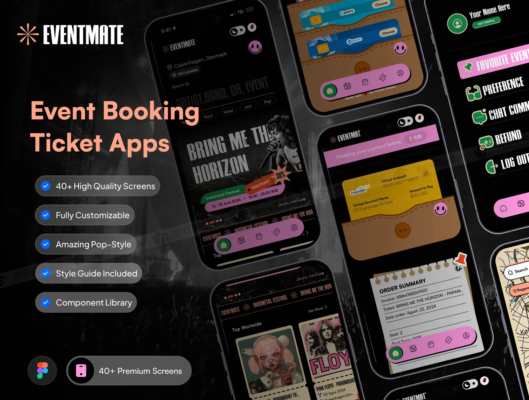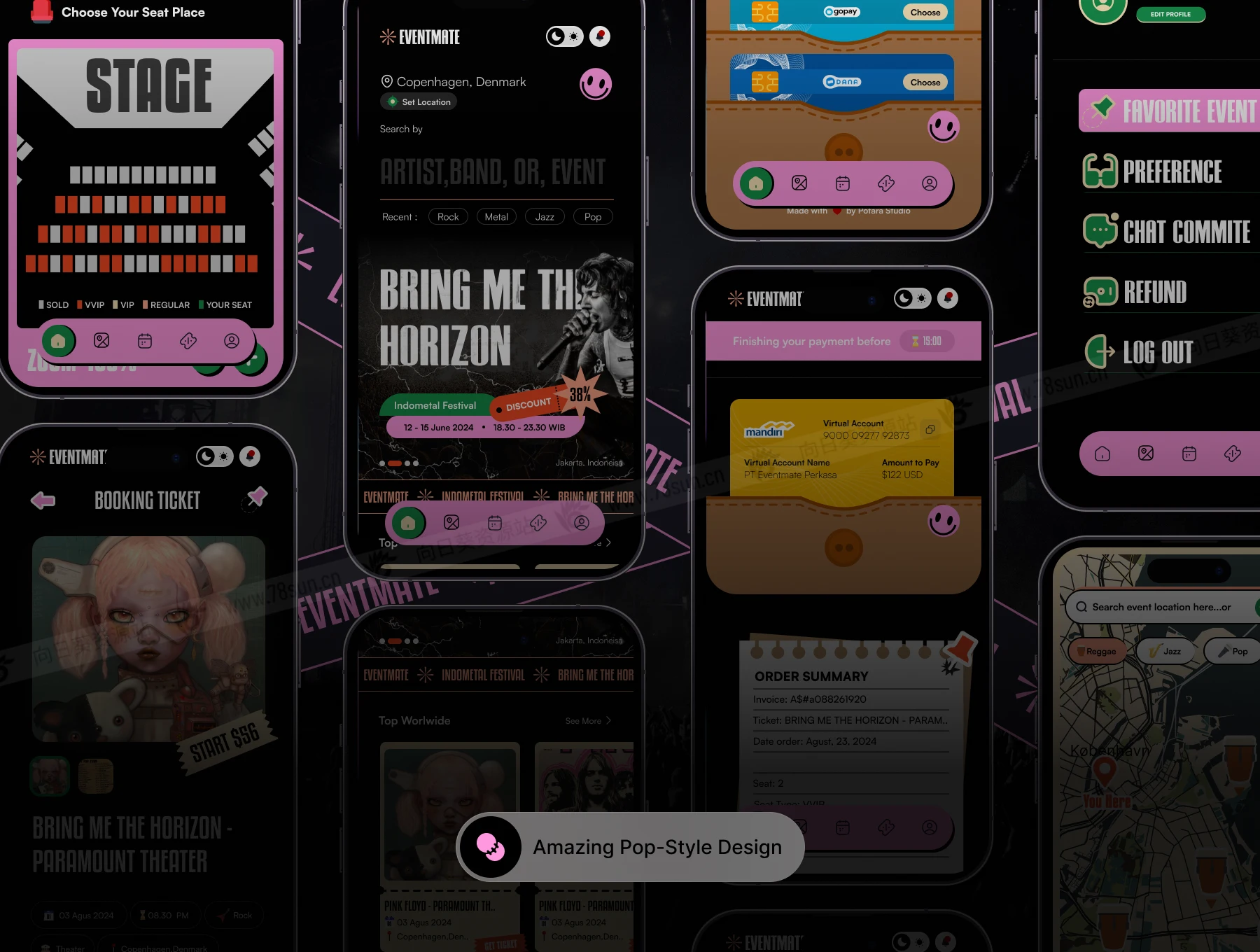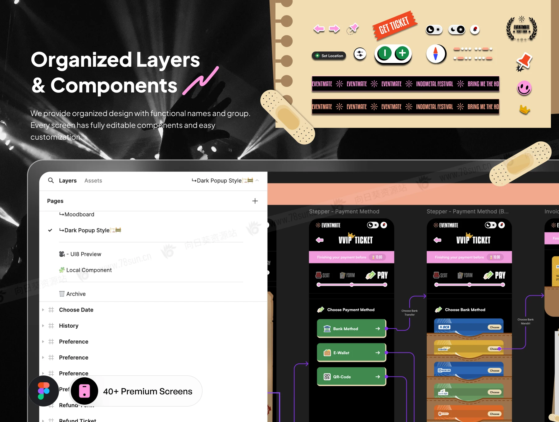 活动票务系统票据信息app ui界面设计fig源文件模板。它采用充满活力的波普艺术风格,为活动管理带来新鲜和现代的美感。