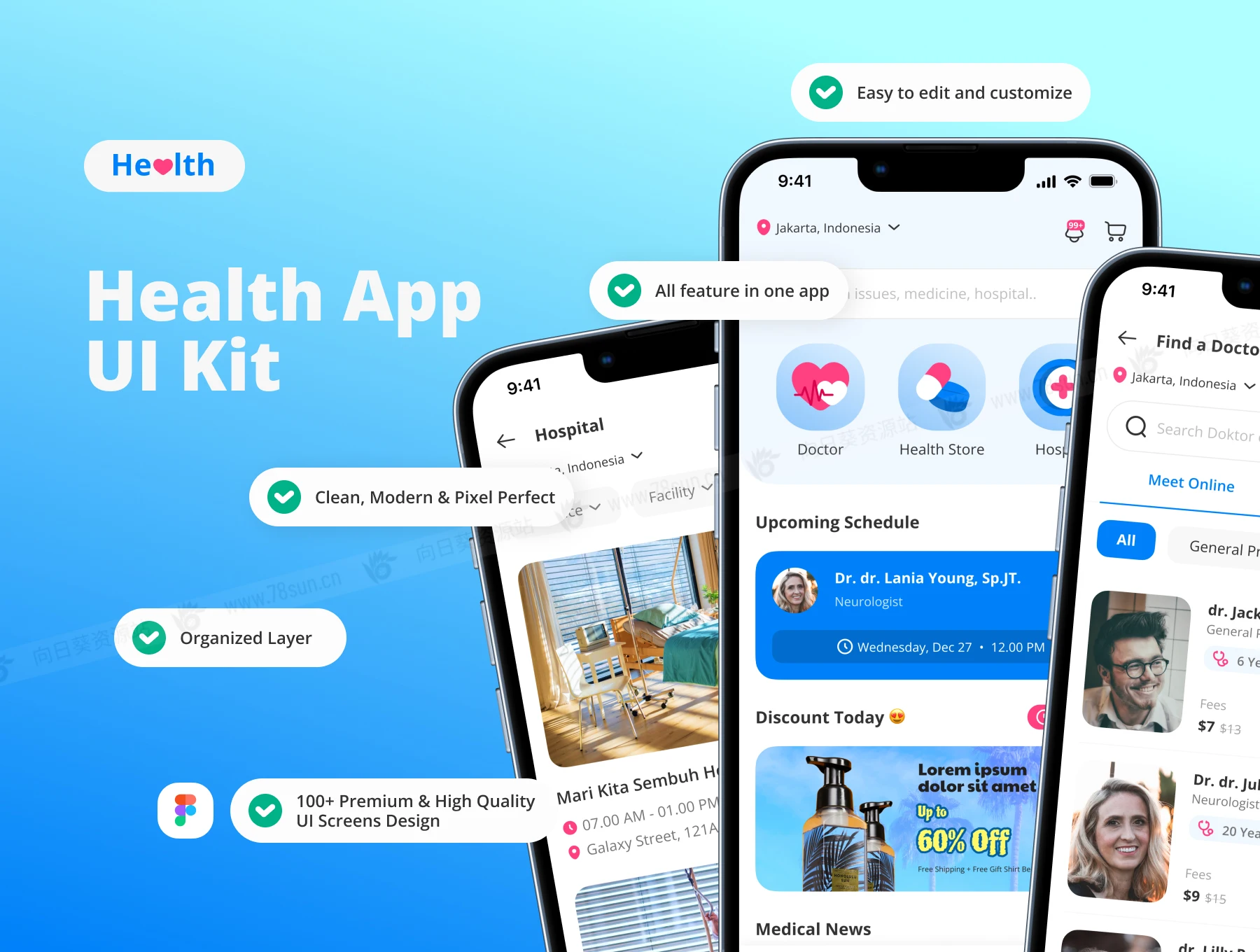 为用户提供便利,通过消息和视频通话快速咨询医生,足不出户即可购买药物,或通过应用程序轻松注册综合诊所。拥有超过 100+ 高品质屏幕设计,具有多种功能,易于编辑或根据您的需要进行自定义,让您的工作更快、更实用。