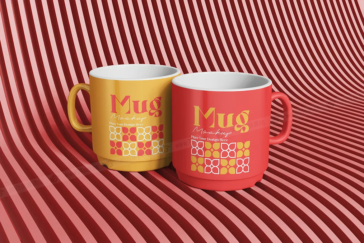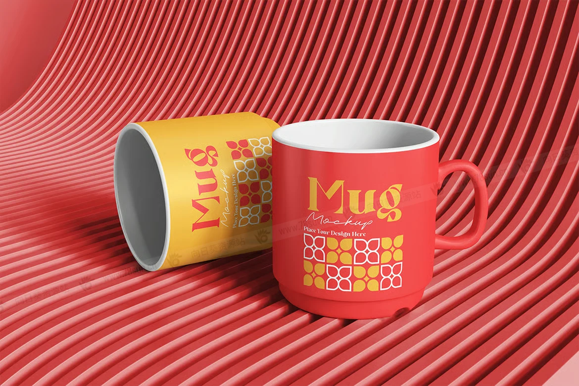 陶瓷马克杯品牌VI效果图展示智能贴图psd设计样机。使用智能对象轻松替换为您的设计,双击智能图层,复制并粘贴您的图稿。 包含精心组织的 PSD 文件,具有结构良好的图层。