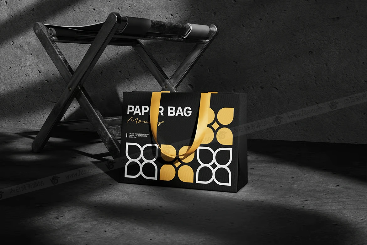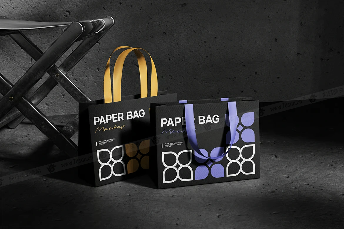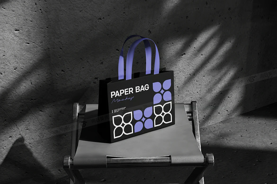 纸质手提袋购物袋品牌VI效果图展示智能贴图psd设计样机。使用智能对象轻松替换为您的设计,双击智能图层,复制并粘贴您的图稿。 包含精心组织的 PSD 文件,具有结构良好的图层。