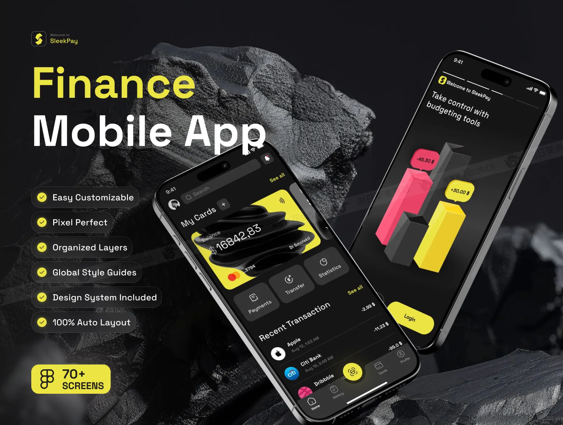 SleekPay 采用时尚现代的方式设计,所有层次都井井有条。SleekPay 配备了一个包含数百个组件的设计系统。设计系统配备了排版、图标、颜色样式、组件、元素、按钮、输入表单、警报、头像、复选框、芯片、网格、切换开关等。