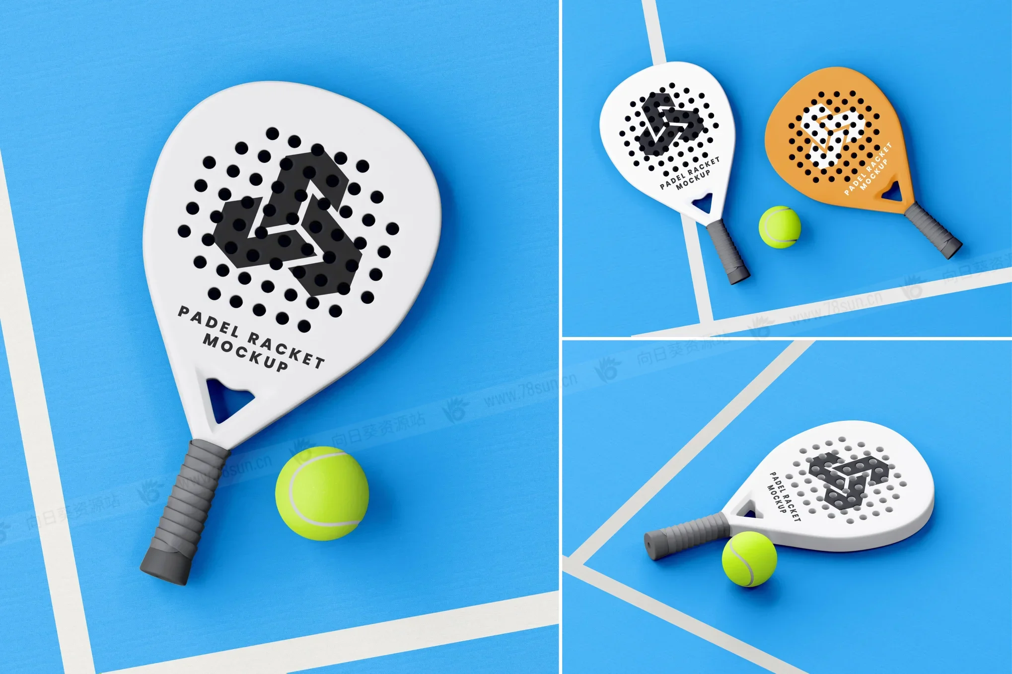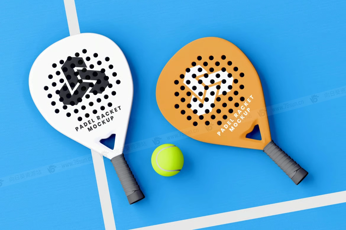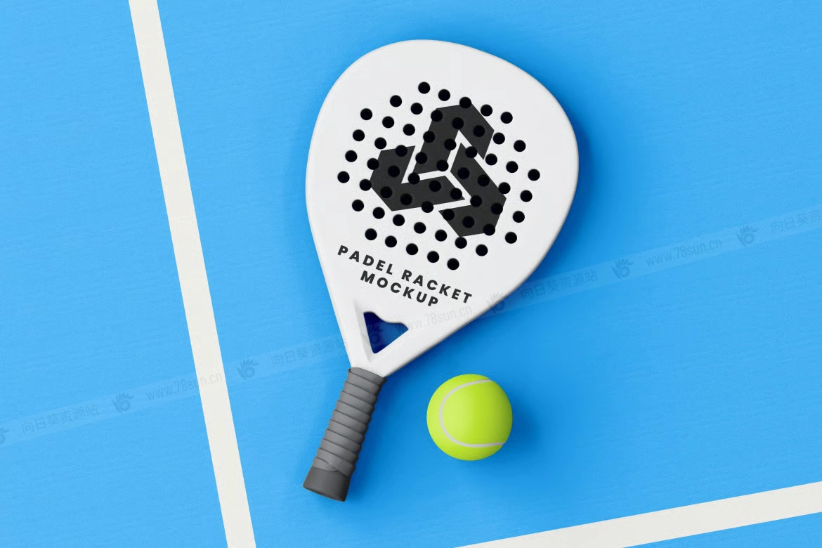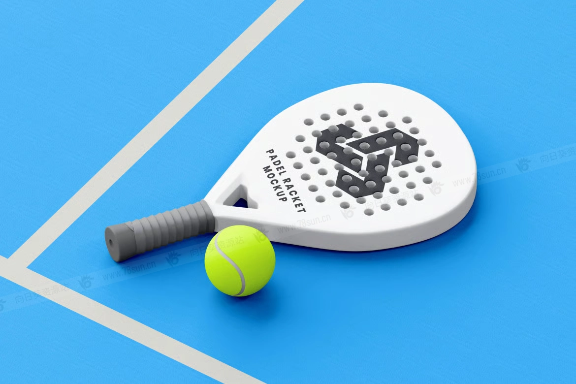 板式网球Padel球拍现场品牌VI效果图展示智能贴图psd设计样机。该模型具有逼真的阴影和场边视角,为您的体育视觉效果增添了背景和能量。