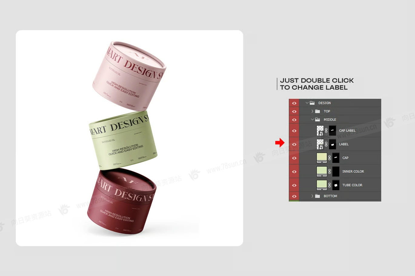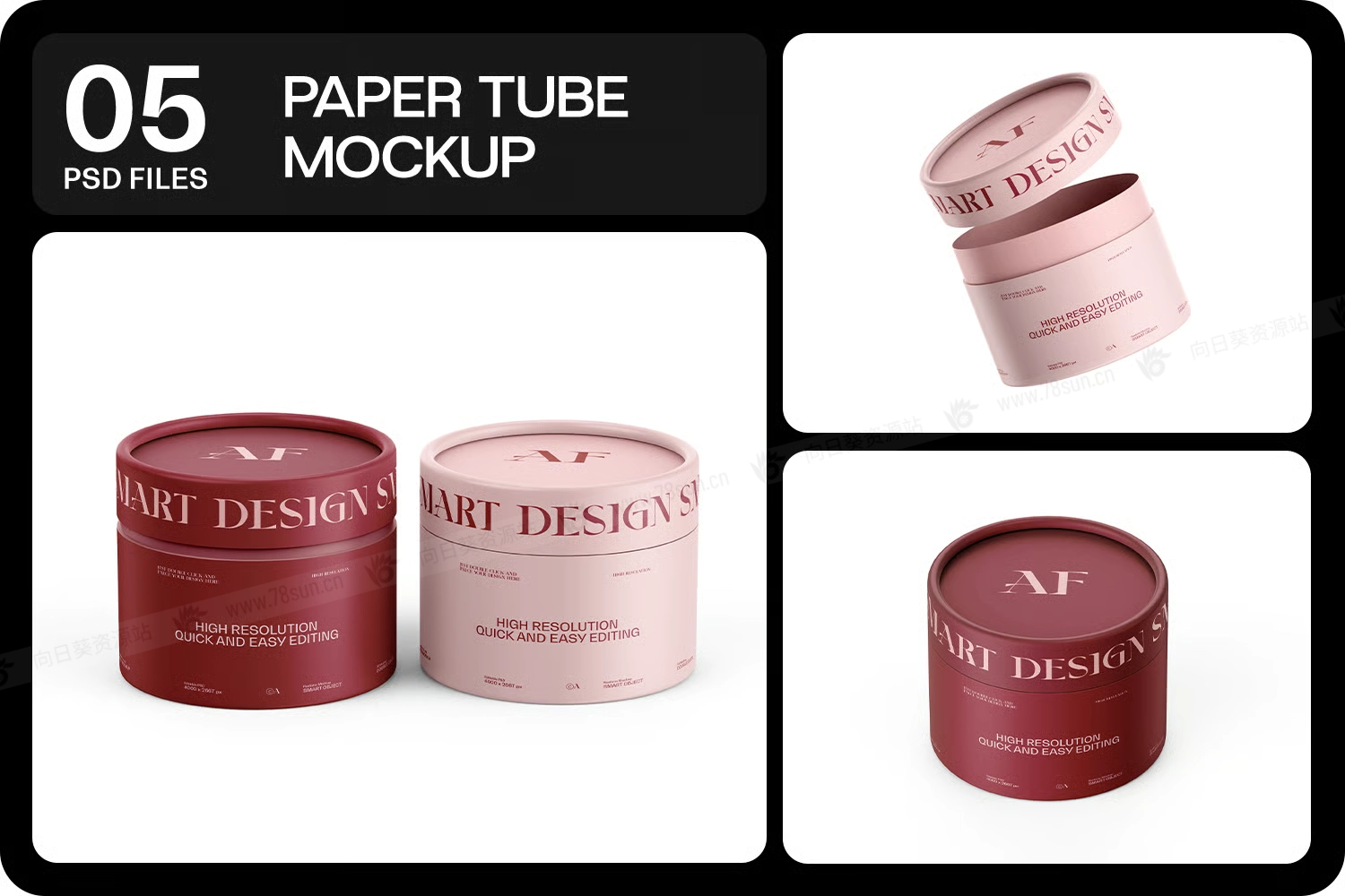 食品化妆品纸管品牌VI效果图展示智能贴图psd设计样机。这款高分辨率模型旨在突出优雅和环保品牌,采用哑光饰面的圆柱形纸管,非常适合化妆品、有机食品包装或任何需要精致外观的高档物品。借助智能对象图层和完全可编辑的元素,设计师可以轻松插入徽标、标签和自定义艺术品,以创建个性化的包装视觉效果。
