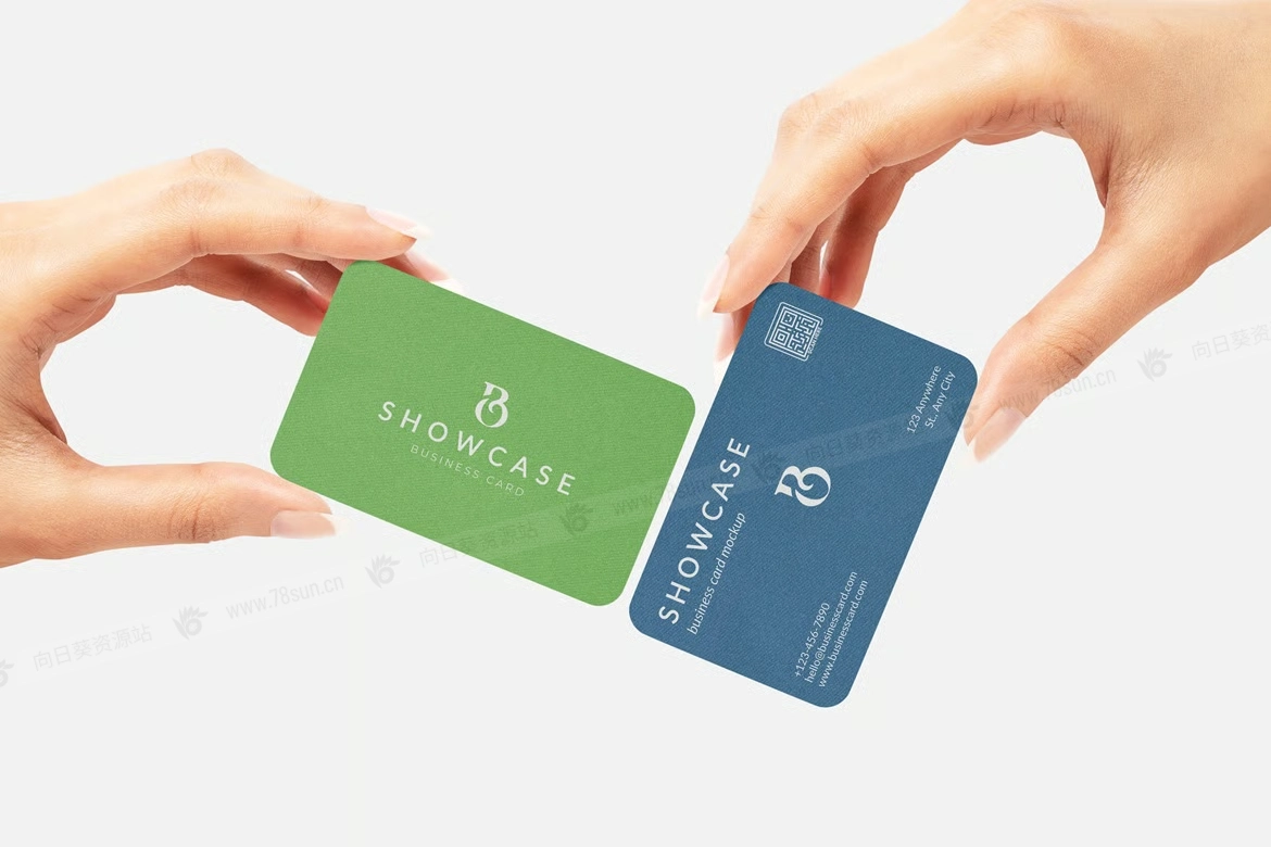 手持名片商业卡片品牌VI效果图展示智能贴图psd设计样机,该模型包括 04 个带有分层良好 PSD 文件,并且该模型还使用智能对象功能,这意味着您可以在几秒钟内轻松快速地使用自己的设计更改当前设计。