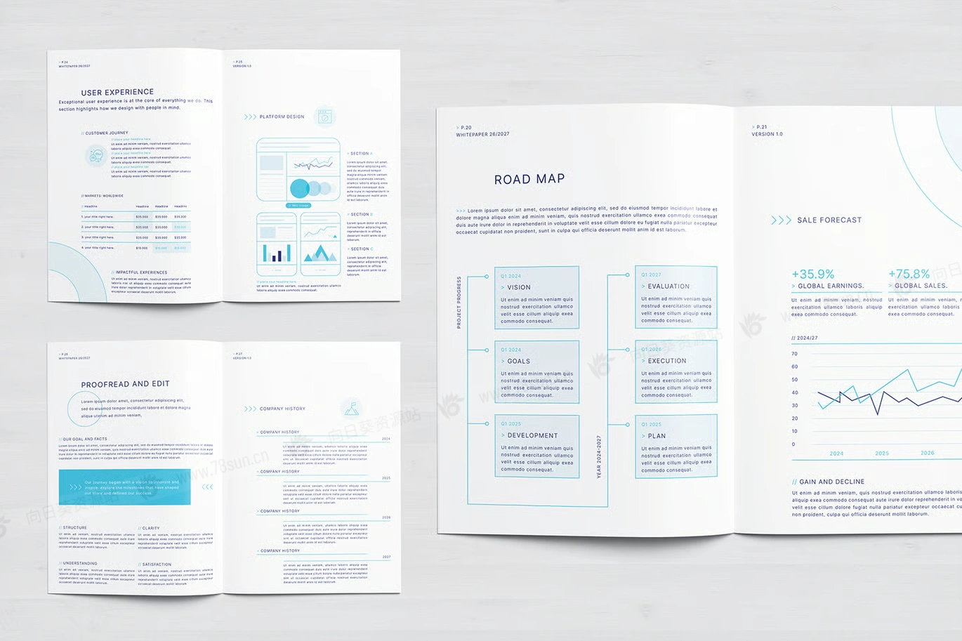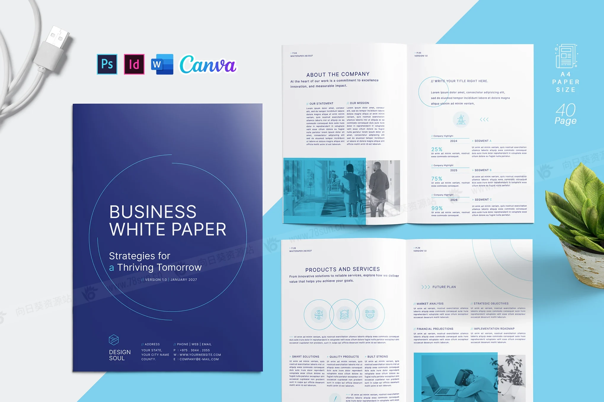 公司简介项目提案小册子杂志宣传册画册psd docx indd设计模板。该模板非常适合技术、金融、医疗保健和教育等行业,是思想领导力、市场分析、产品发布和战略提案的理想选择。每个页面都经过深思熟虑地注入了可编辑的信息图表,确保对企业品牌和商业故事讲述的适应性。这个 40 页的模板专为跨 Canva、InDesign、Photoshop 和 Word 无缝编辑而设计。借只需单击一下即可更新颜色——使其非常适合各种专业用例。