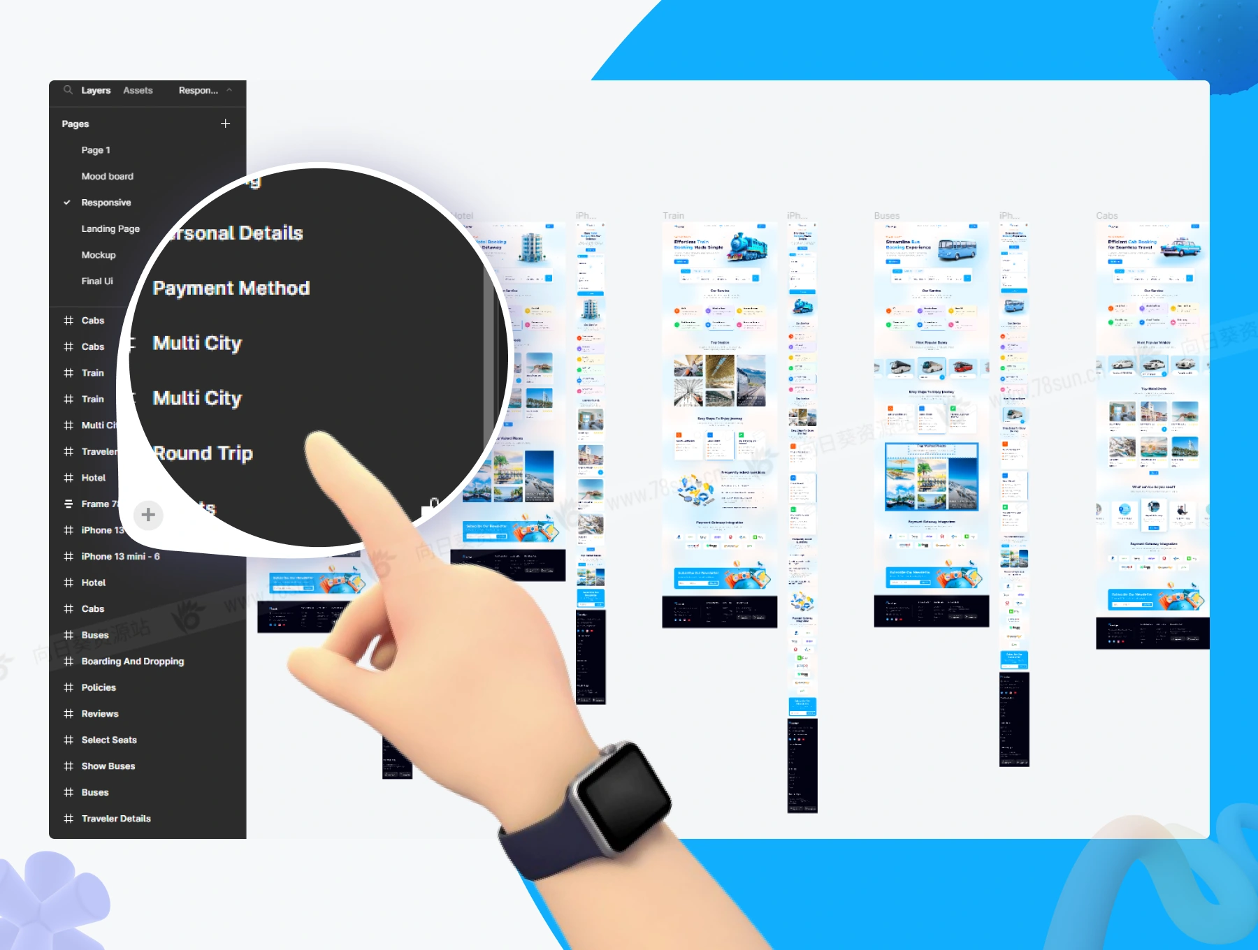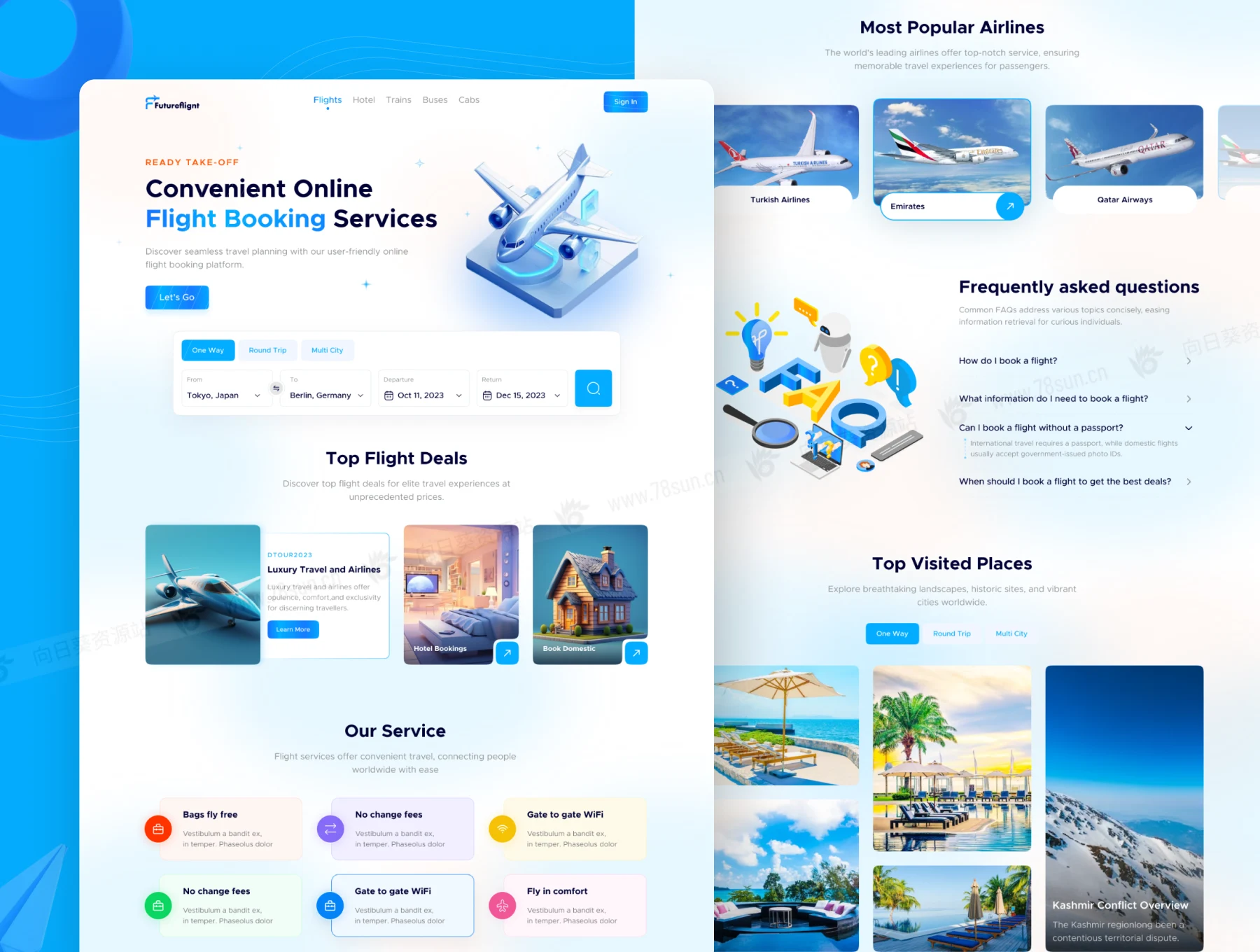 旅行旅游航班预订景点介绍响应式网站web ui界面设计fig源文件模板,
