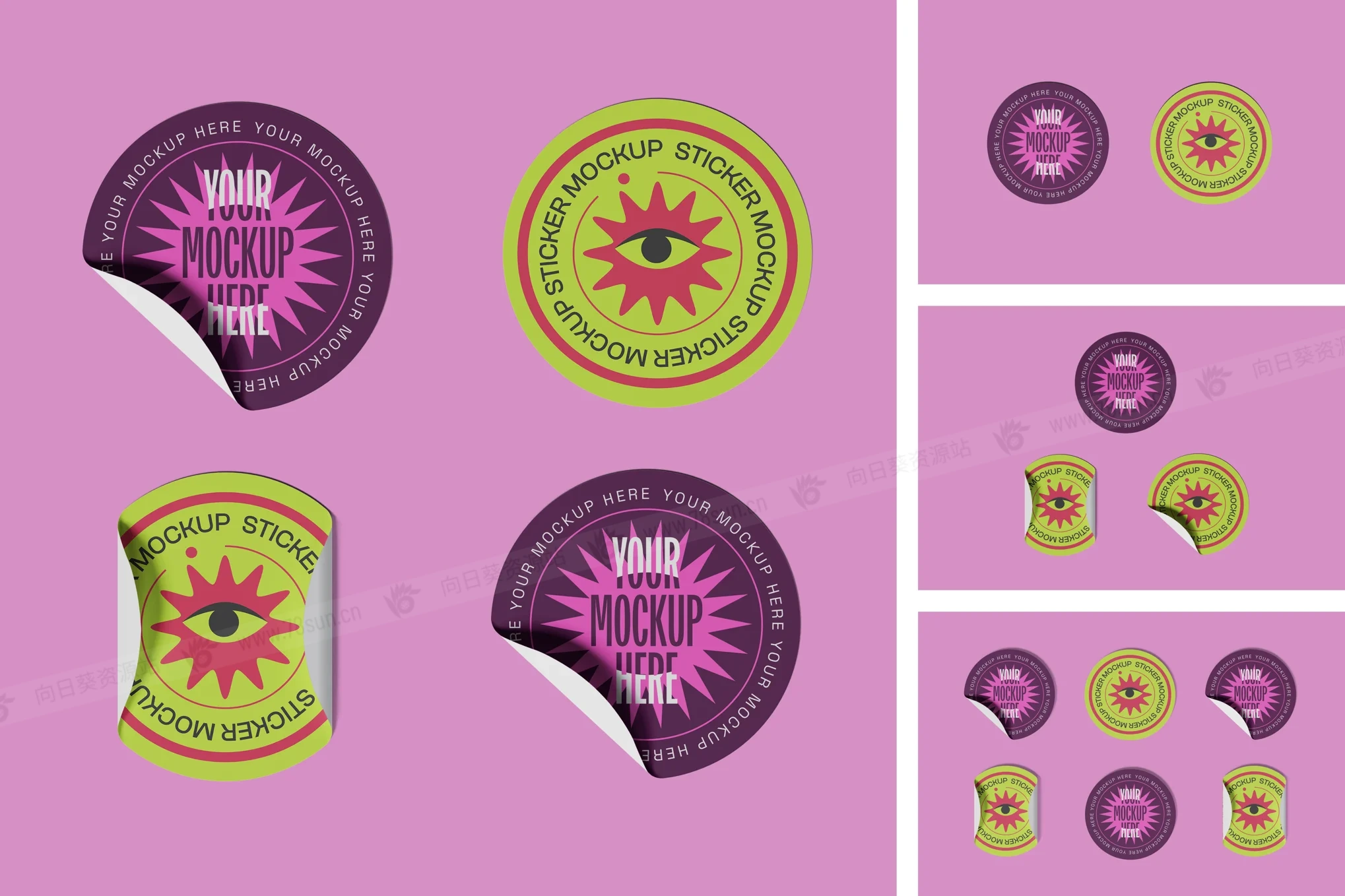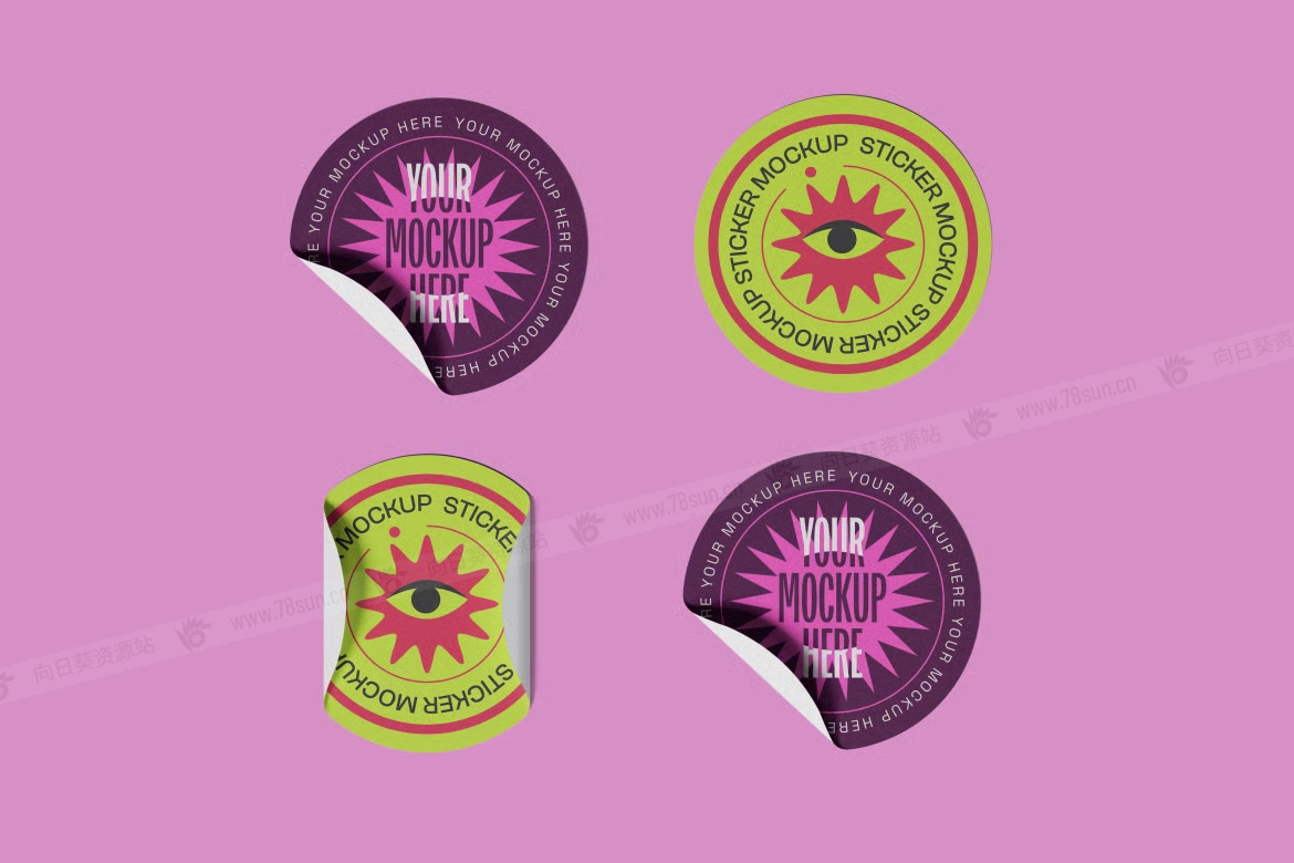 圆形剥皮贴纸品牌VI效果图展示智能贴图psd设计样机,