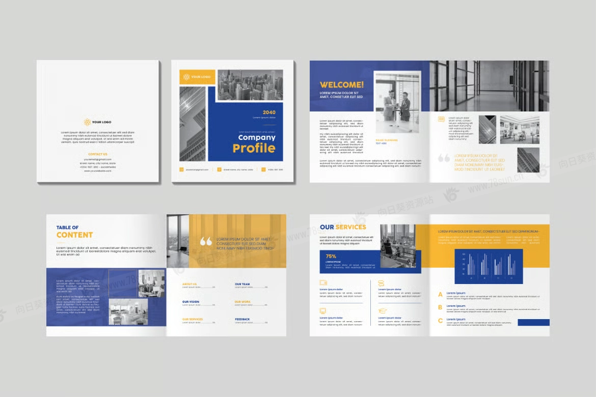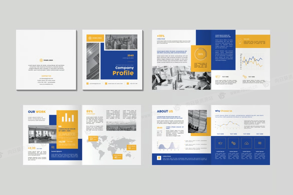 方形公司简介项目提案小册子杂志宣传册画册psd ai设计模板,