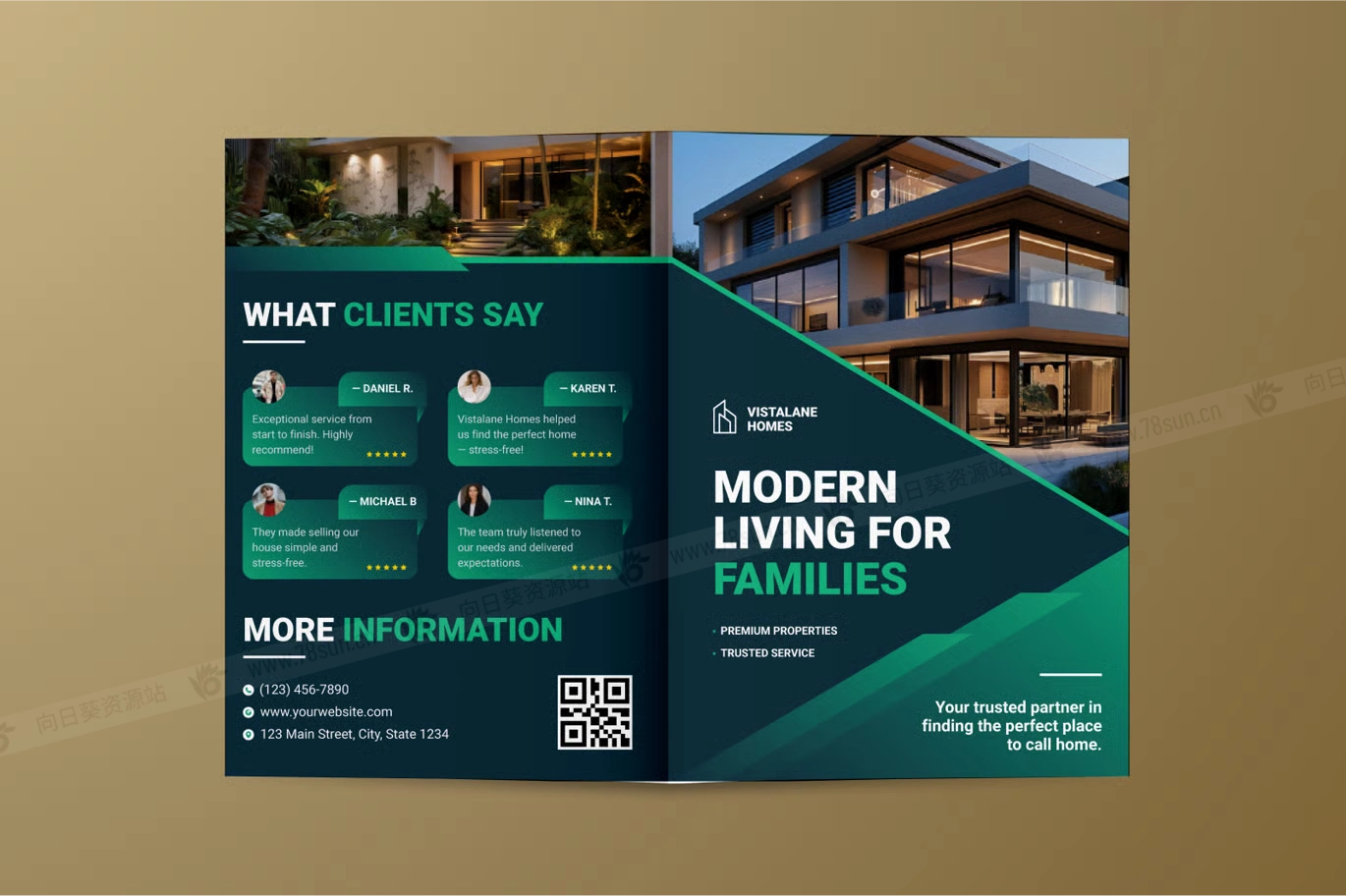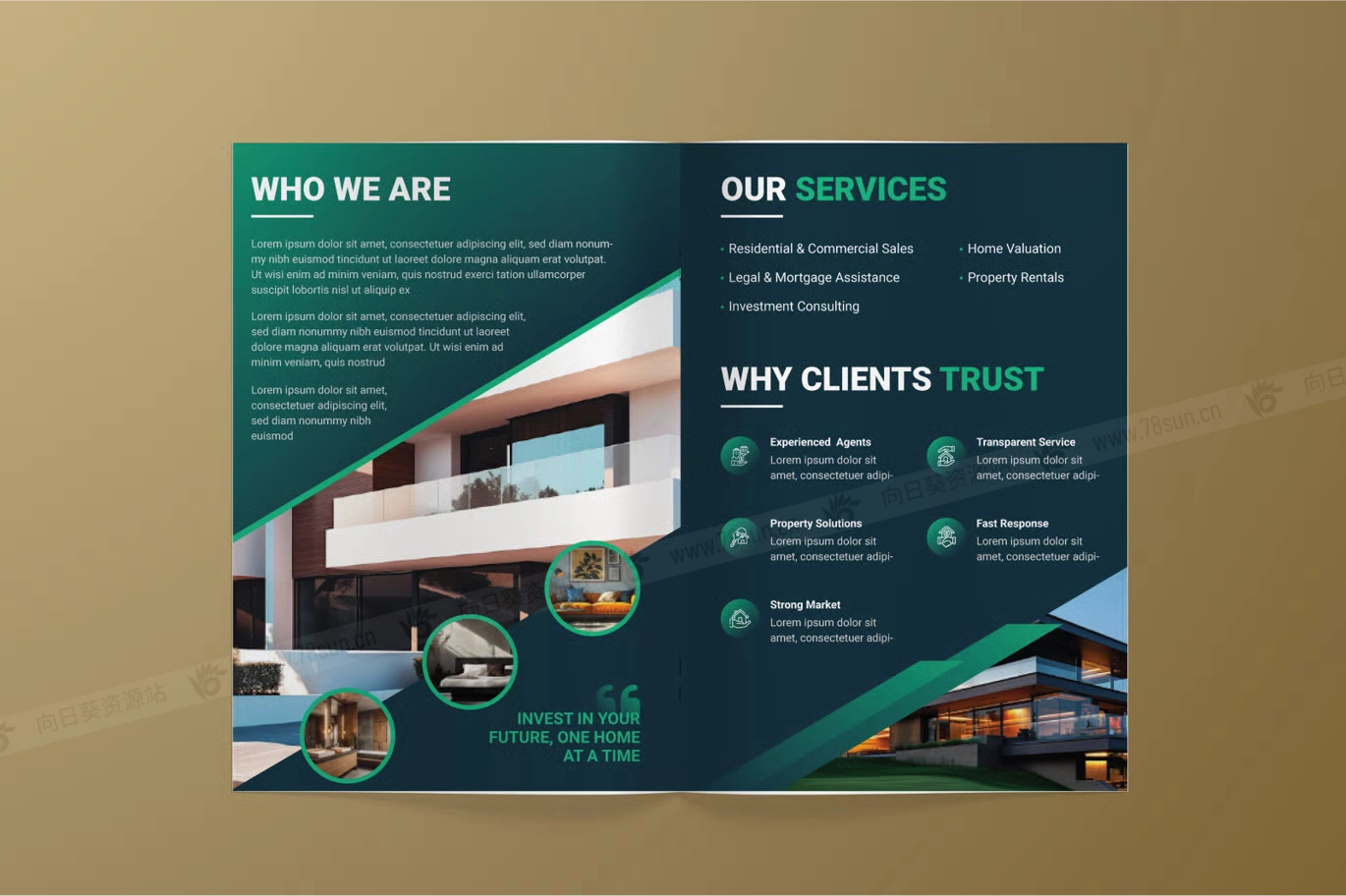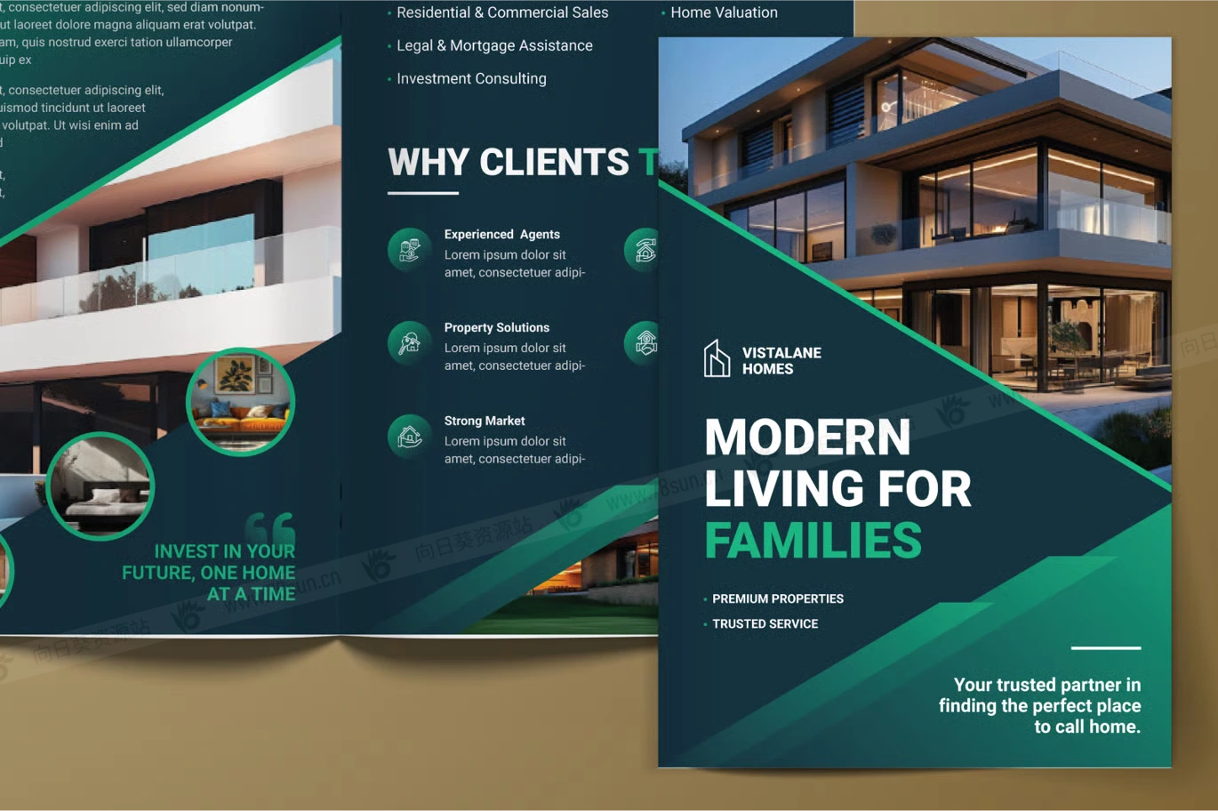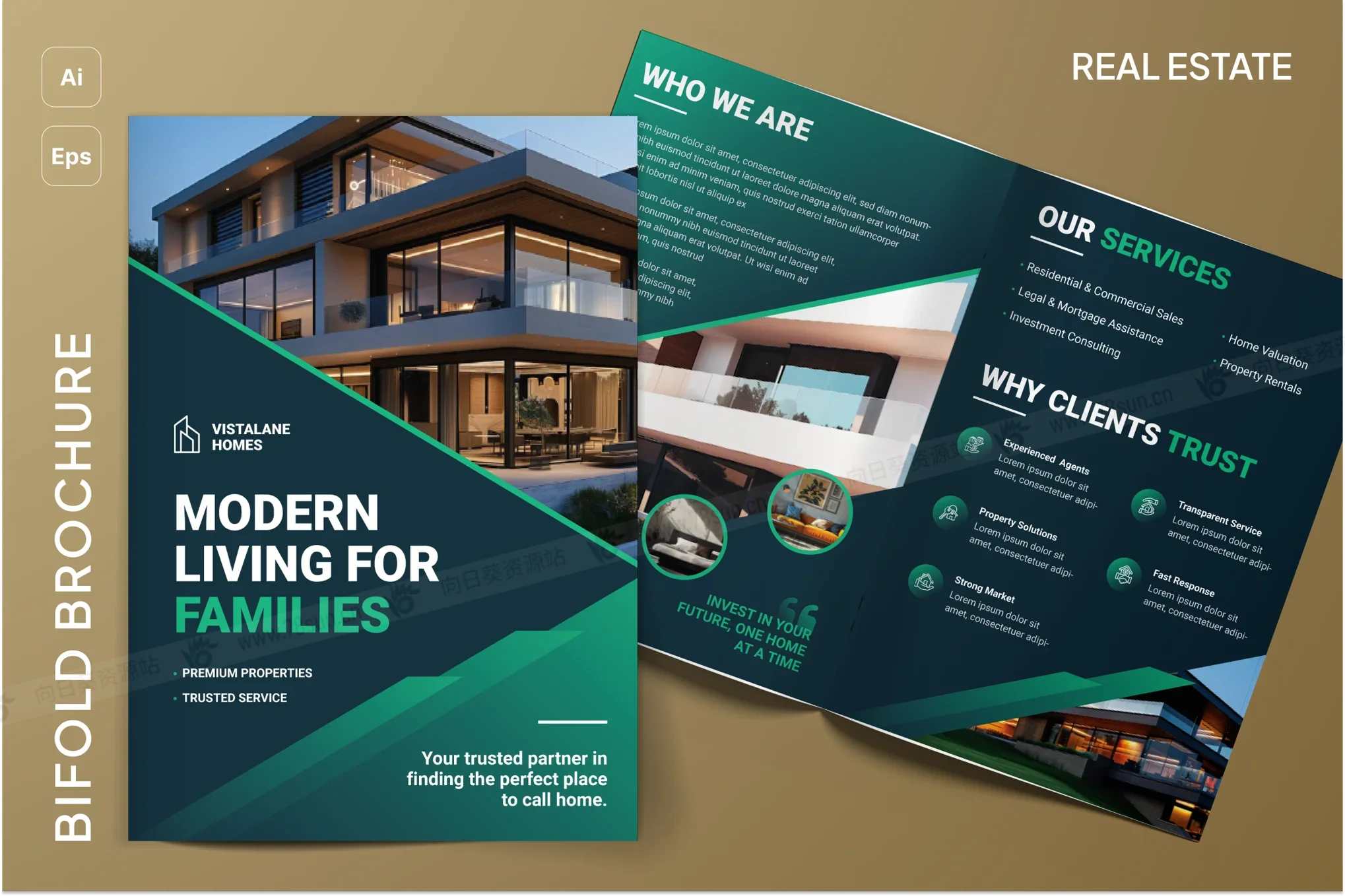 房地产营销公司简介双折页宣传小册子ai设计模板,是推广房地产列表、房地产代理、住房开发和投资报价的实用解决方案。凭借干净有序的结构,它允许您以专业格式展示关键信息,例如房产特征、位置亮点和联系方式。