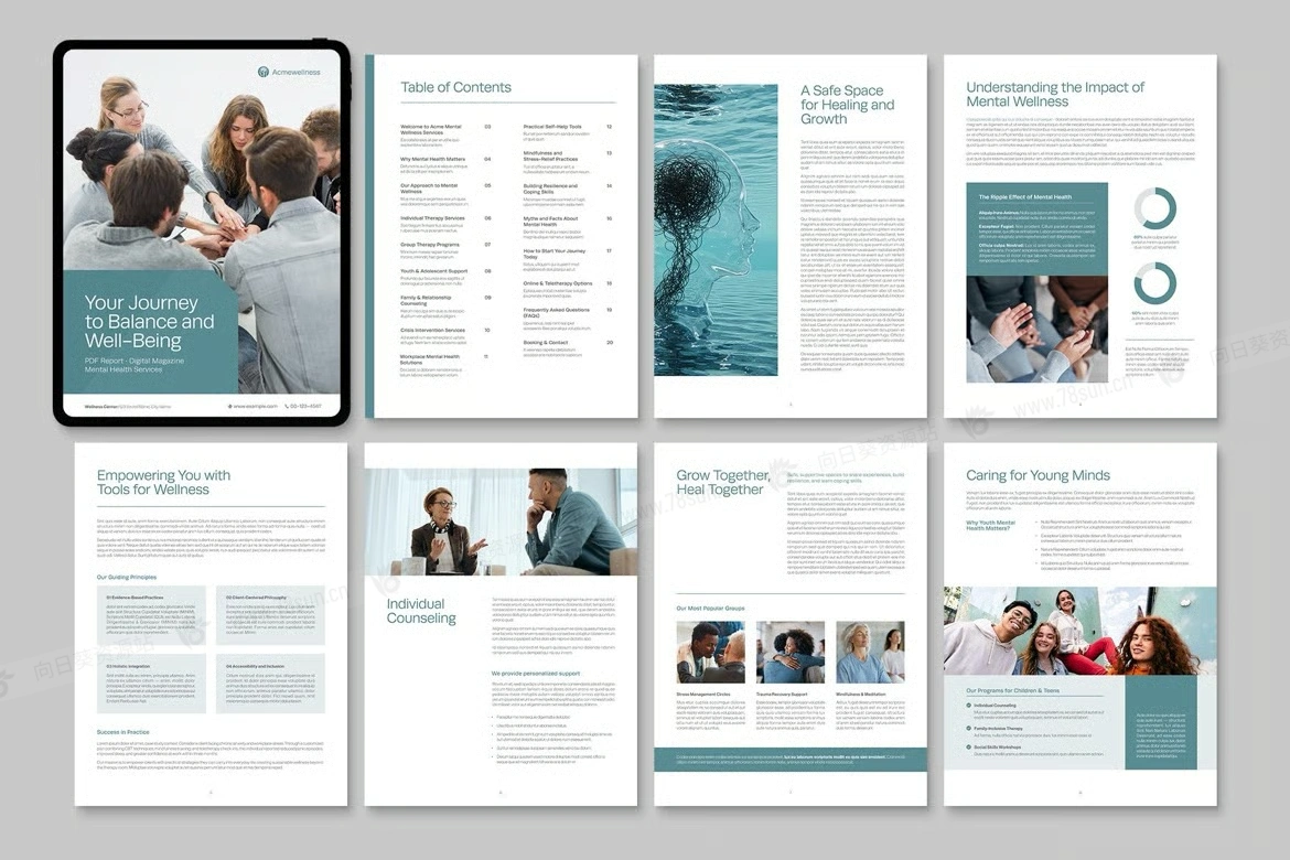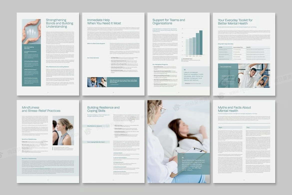 医院健康研讨会电子书数字小册子杂志宣传册画册indd设计模板,提供 Canva、InDesign IDML 和 INDD 格式,非常适合需要有影响力的营销材料、健康研讨会或企业演示的企业。