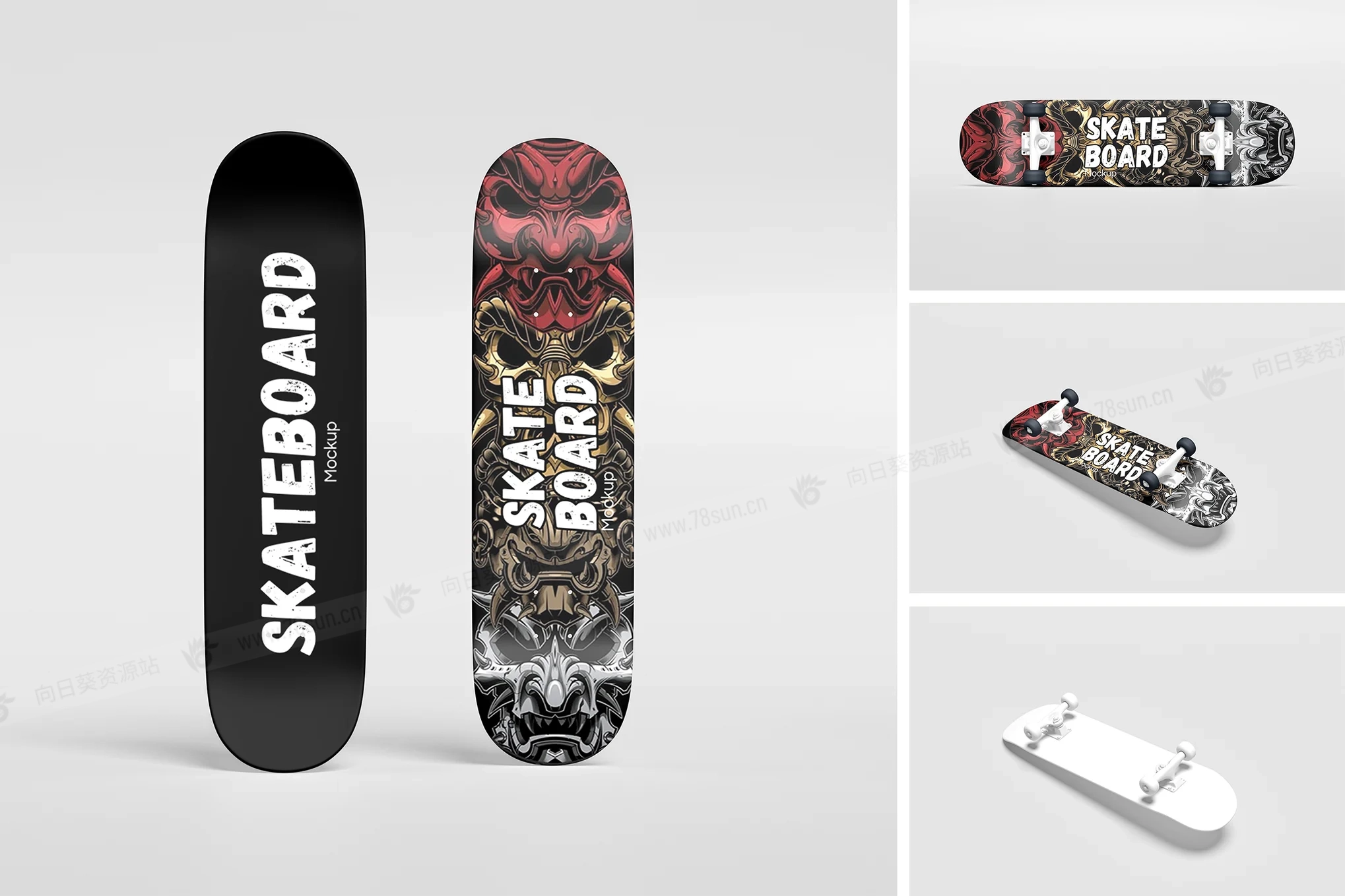 滑板品牌VI效果图展示智能贴图psd设计样机。该模型包括 03 个带有分层良好 PSD 文件,并且该模型还使用智能对象功能,这意味着您可以在几秒钟内轻松快速地使用自己的设计更改当前设计。