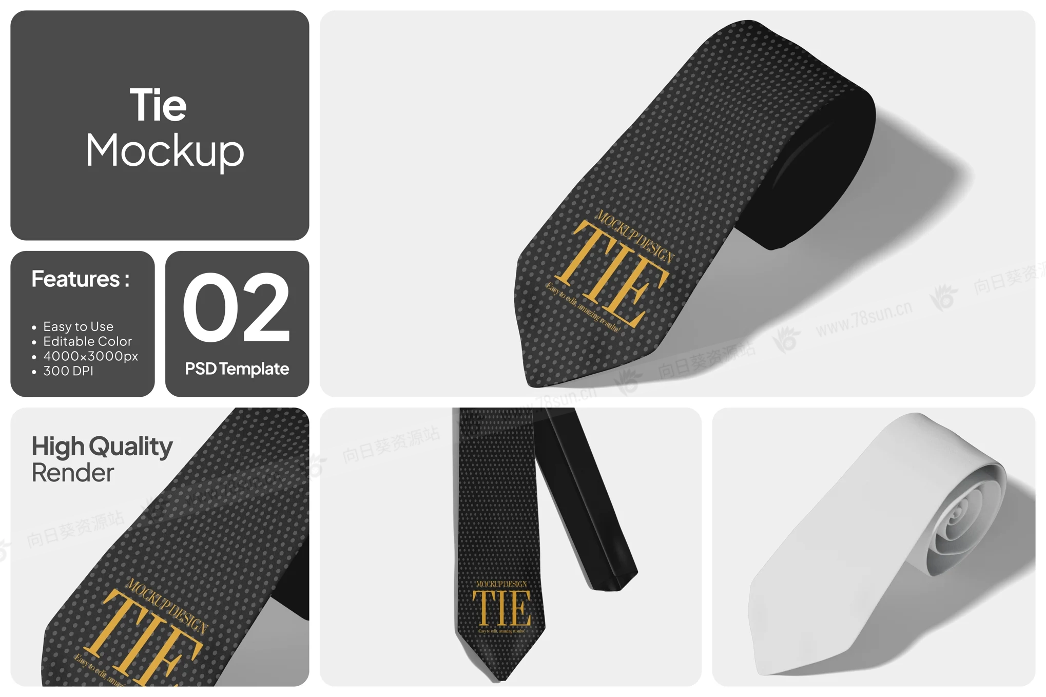 领带品牌VI效果图展示智能贴图psd设计样机,使用智能对象图层轻松插入您的图稿,并自定义织物颜色、图案和背景以符合您的品牌风格。