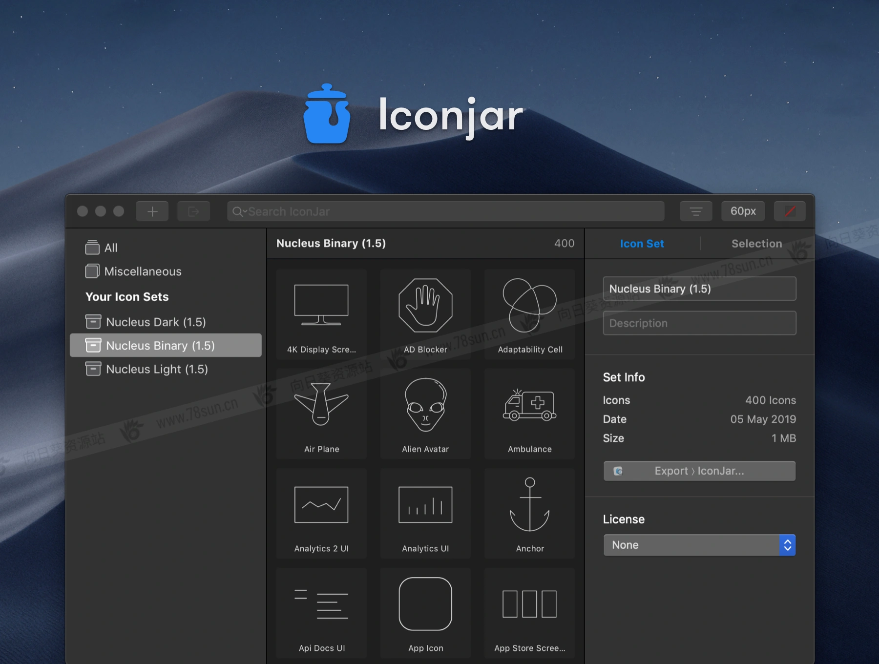 通过 Sketch 和 Iconjar 具有很高的定制潜力、令人难以置信的易于搜索以及内置维护潜力的高级套装。包括深色、浅色和二进制版本(总共 1000 x 3 = 3000 个图标)。