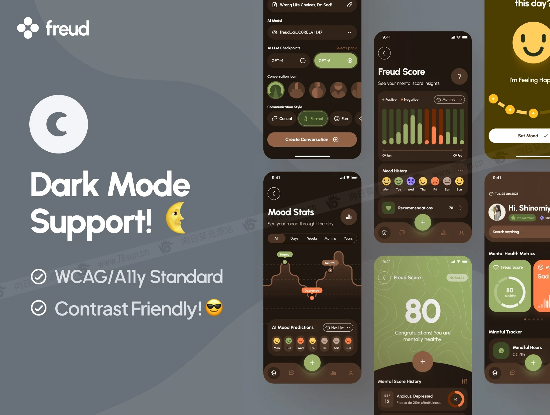 心理健康保健情绪追踪器app ui源文件图表统计fig设计模板V2.0,从治疗 AI 聊天机器人到情绪追踪器,可滋养情绪健康。