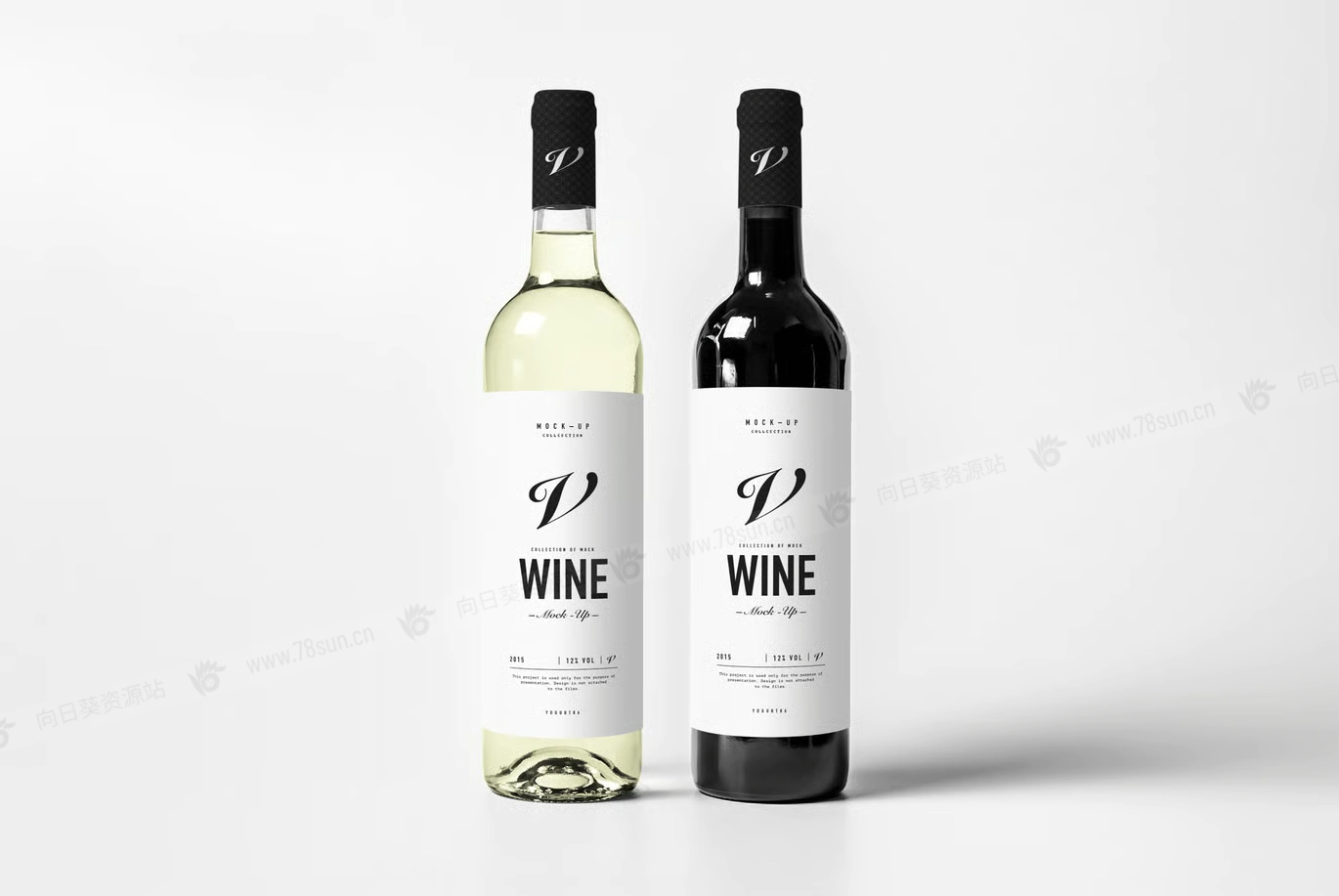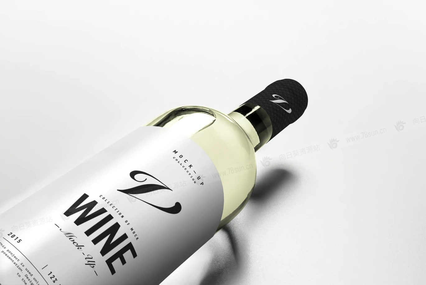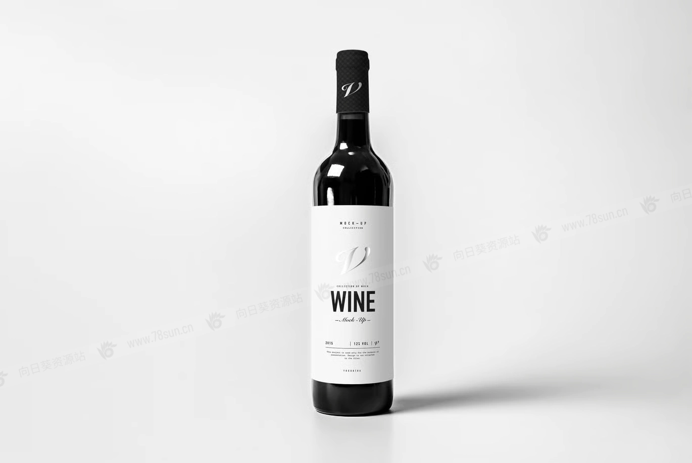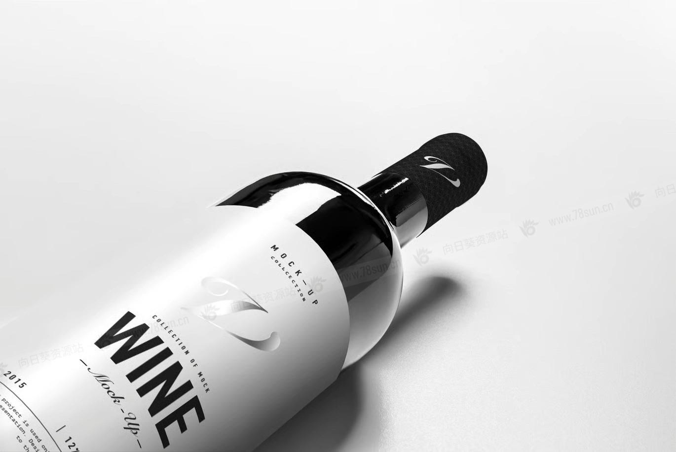 葡萄酒玻璃瓶品牌VI效果图展示智能贴图psd设计样机。易于编辑和修改。
