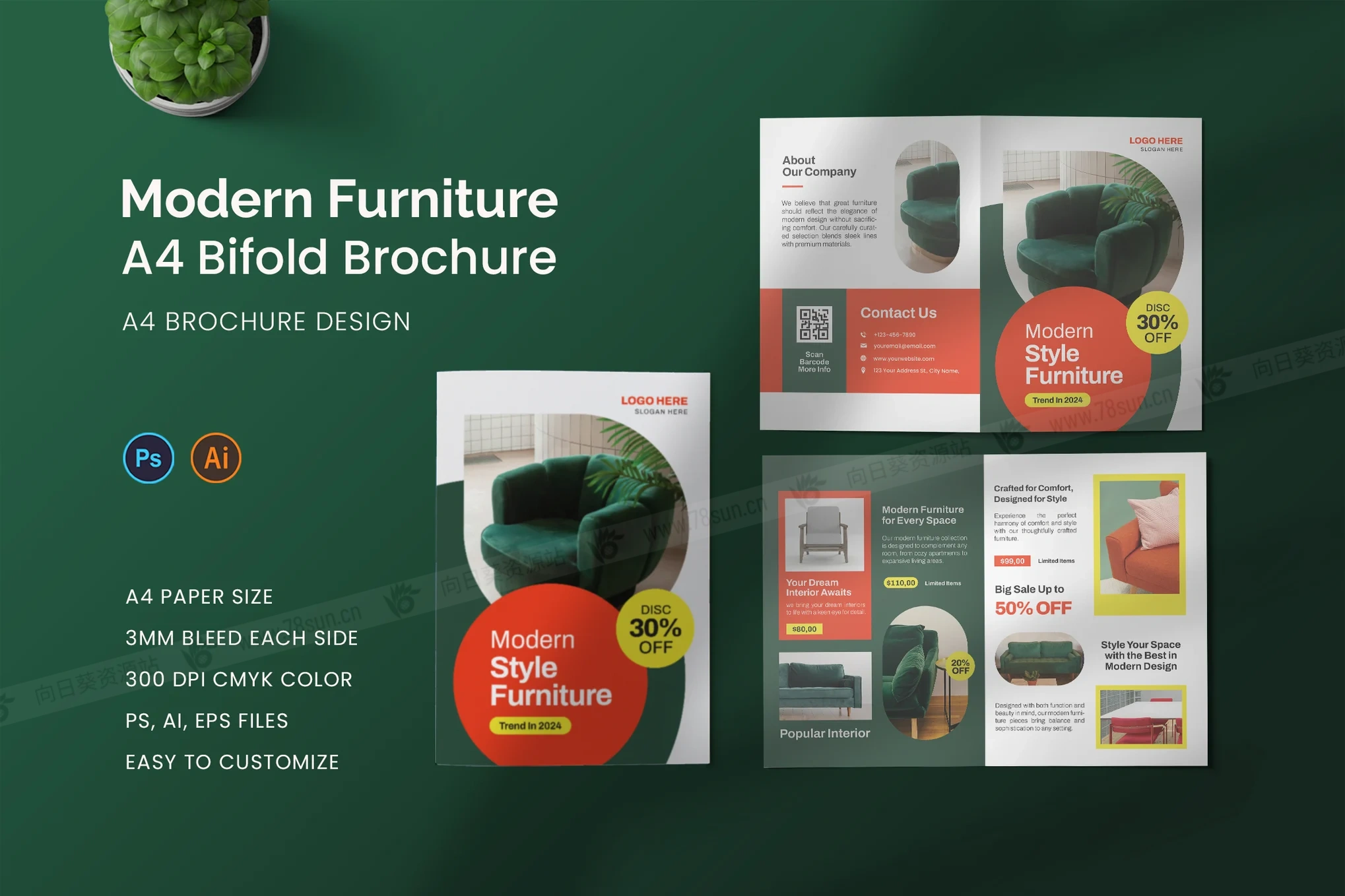 家具促销活动双折页宣传小册子psd ai设计模板,此模板适用于任何项目目的。非常易于使用和可编辑。