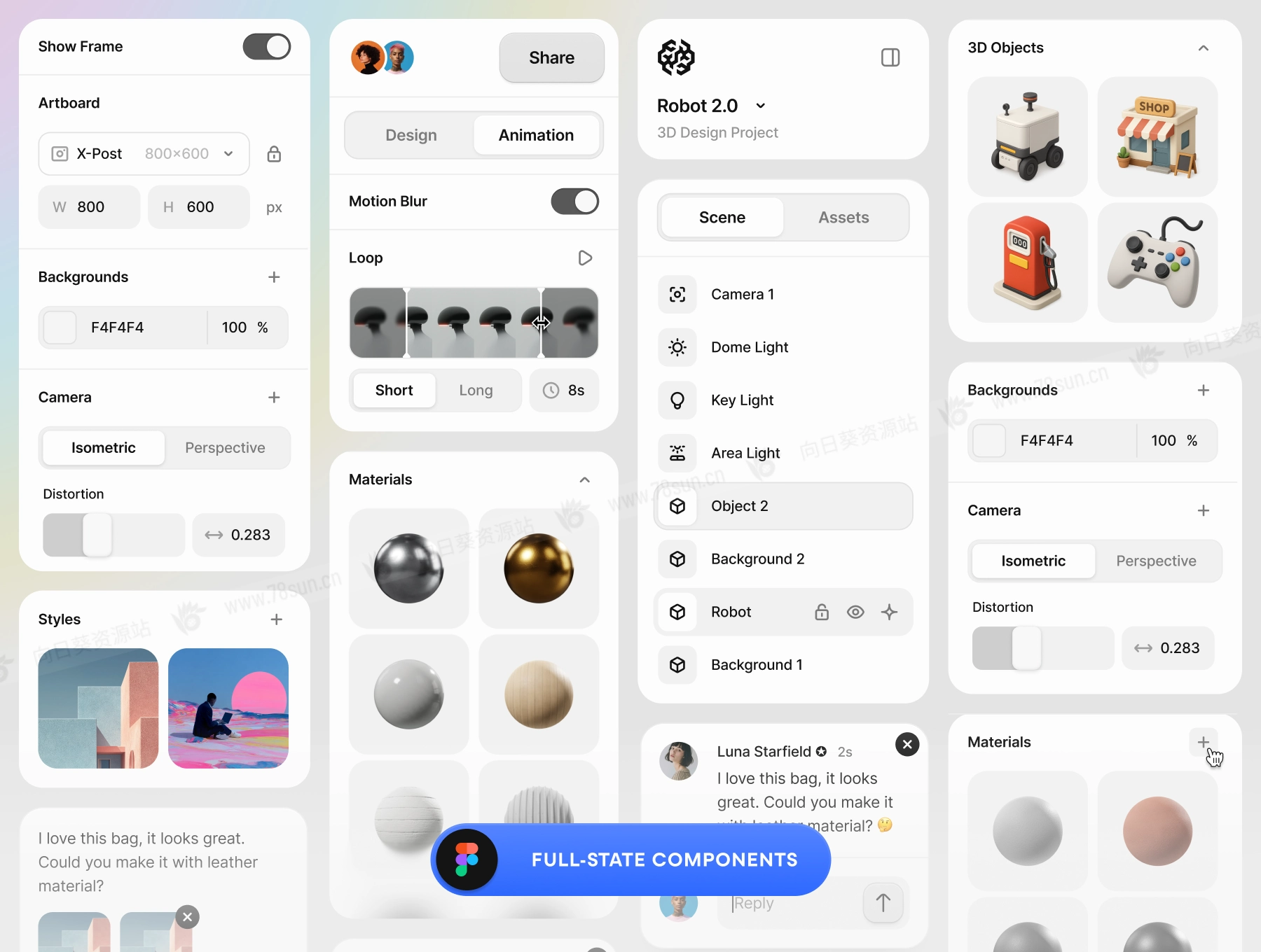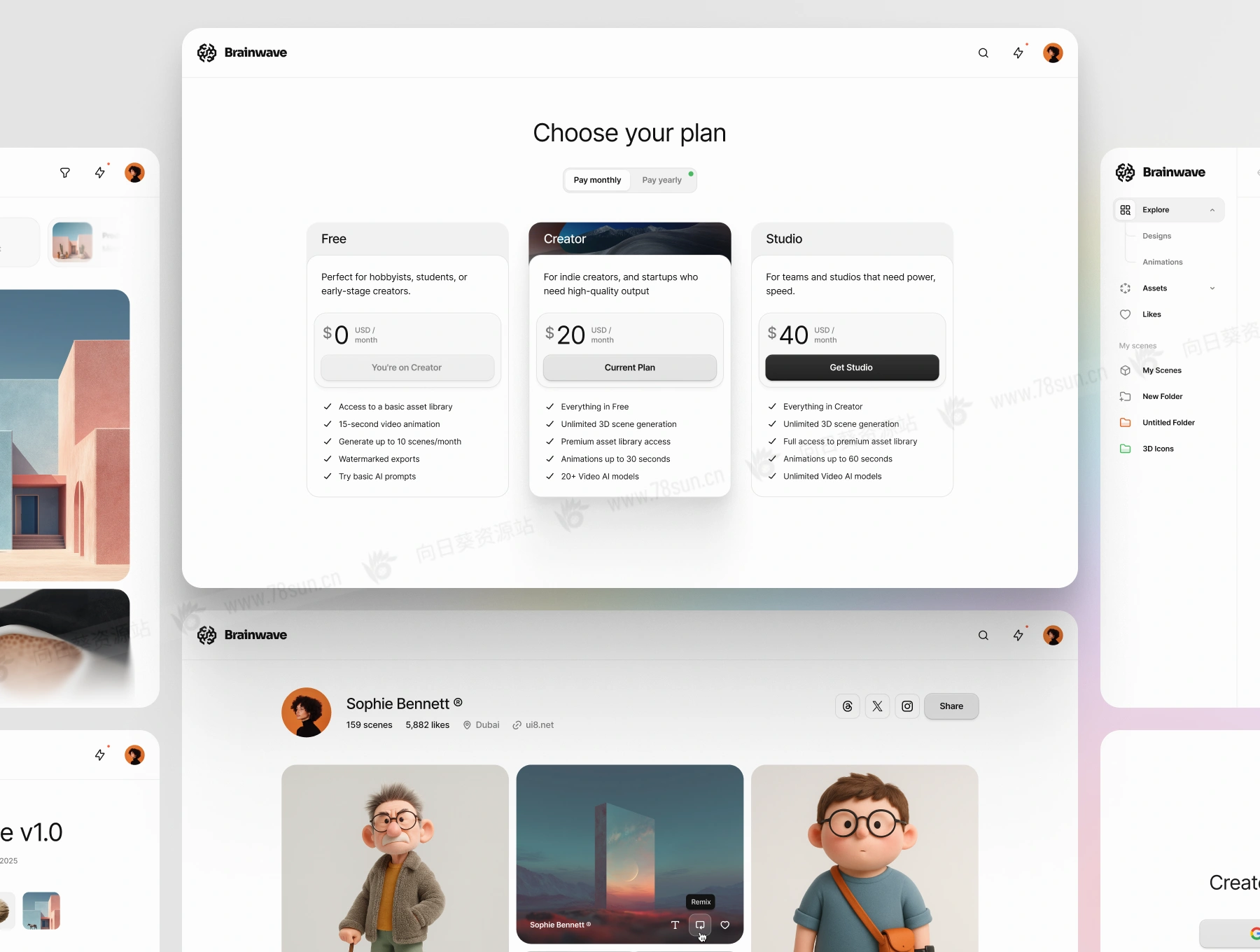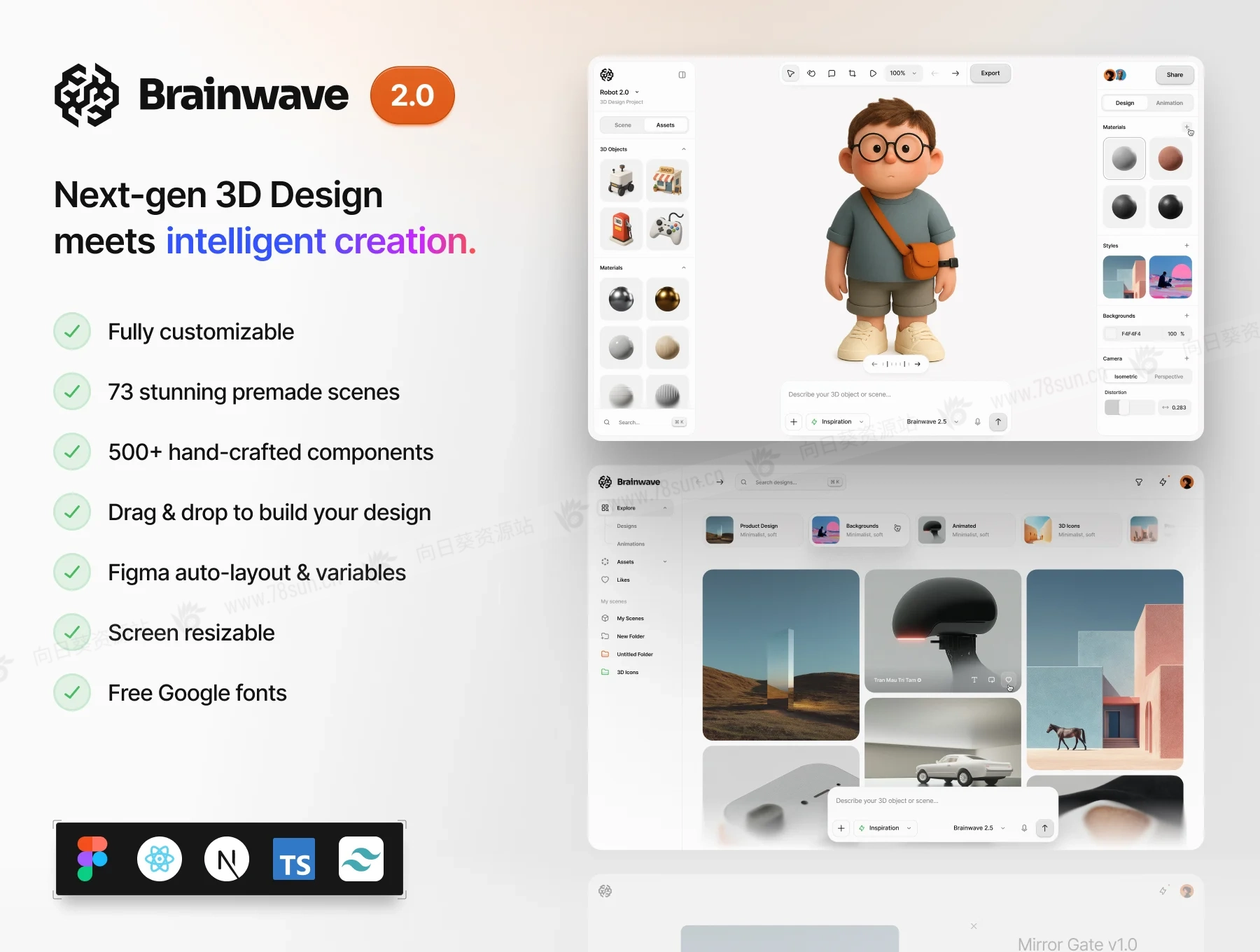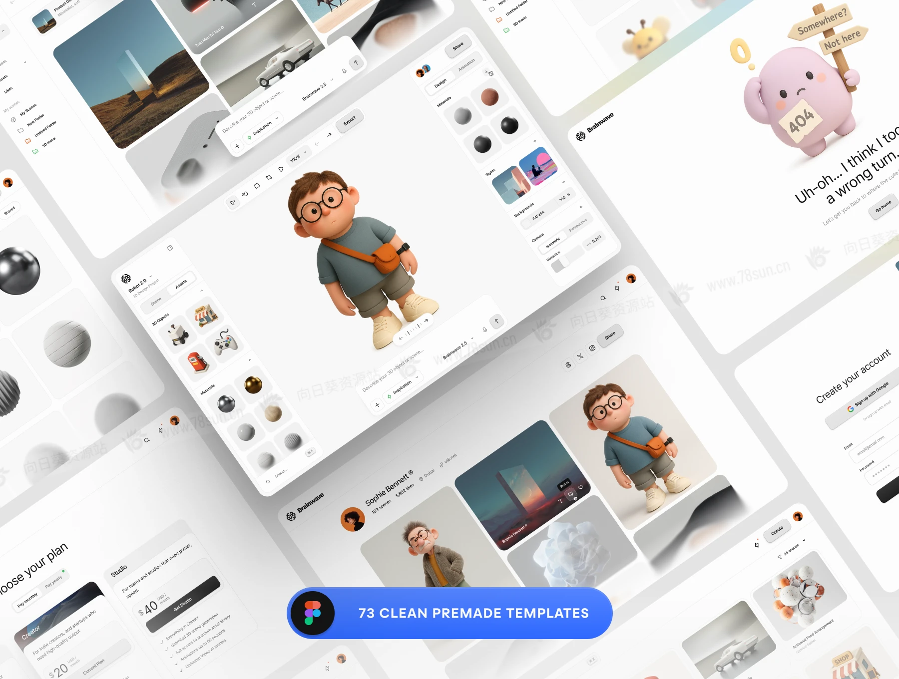它结合了精美的 Figma 设计系统、智能布局结构和全面的响应能力,包括 500+ 手工制作的组件、73 个即用型 3D 场景以及用于下一代界面的高级材质和动画样式。