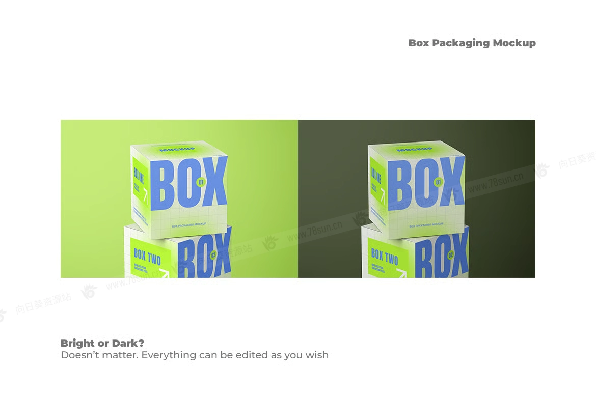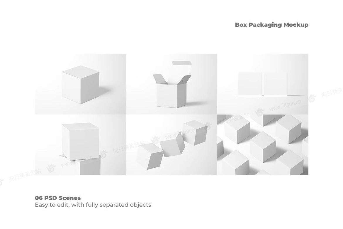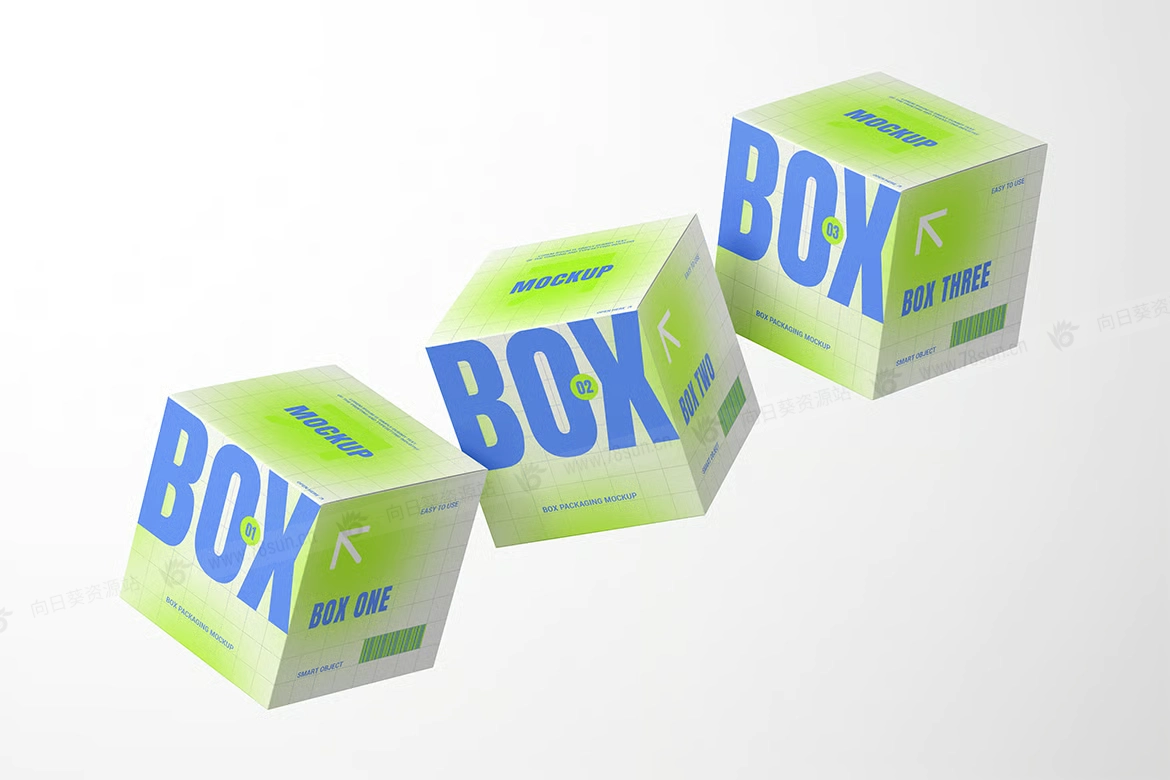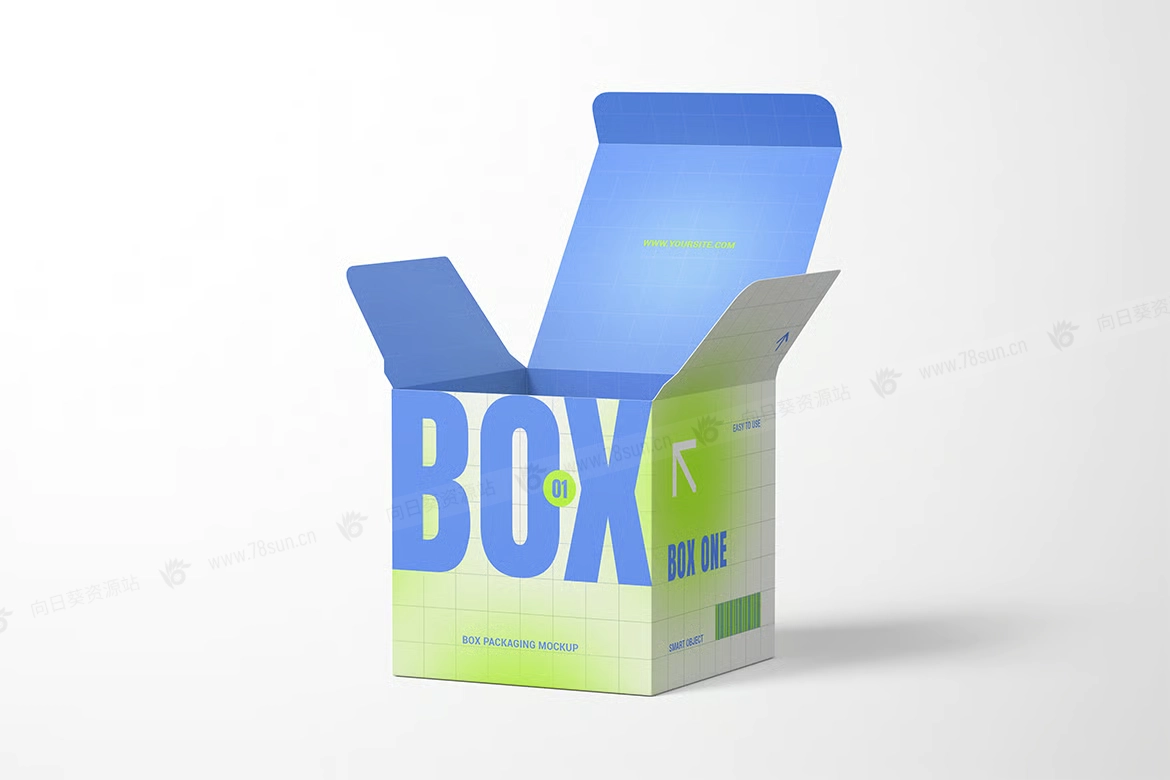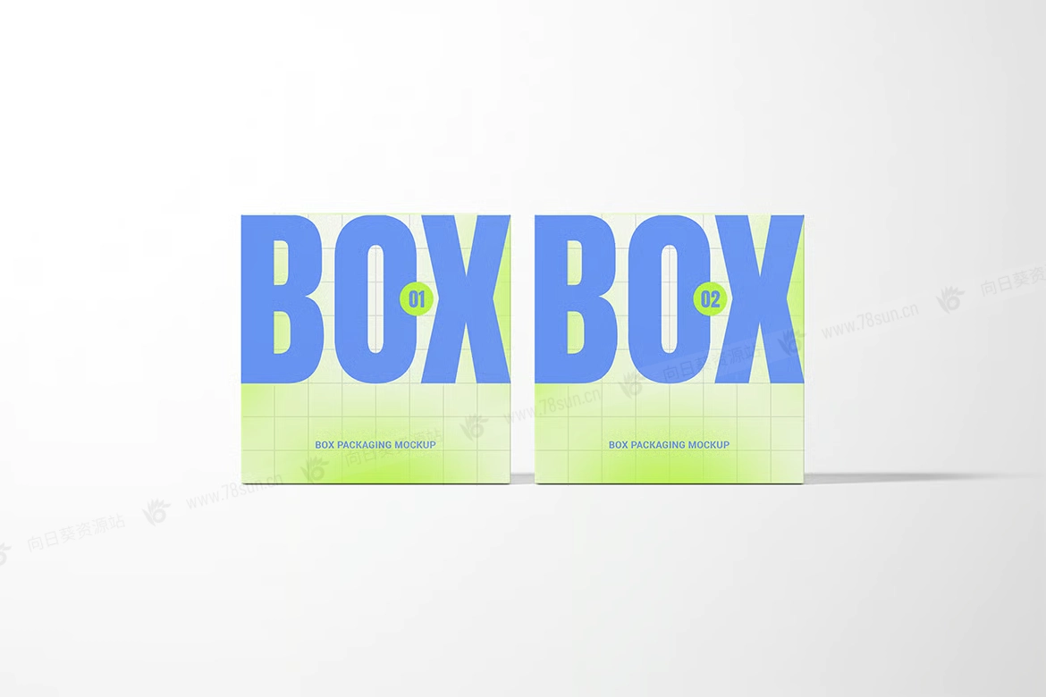 方形包装纸盒子品牌VI效果图展示智能贴图psd设计样机,