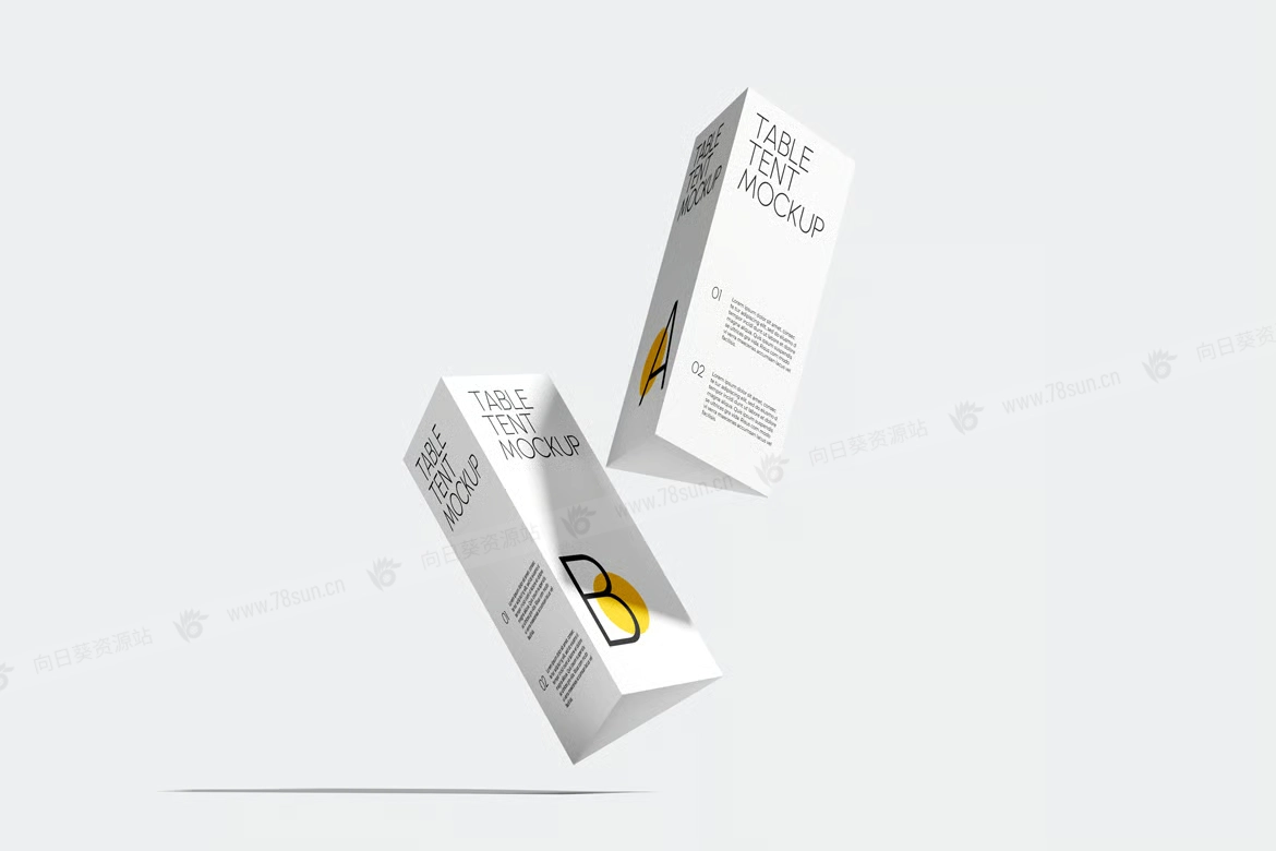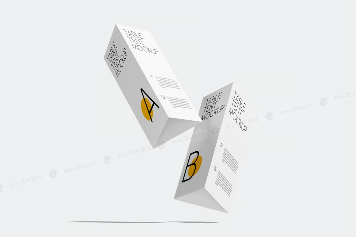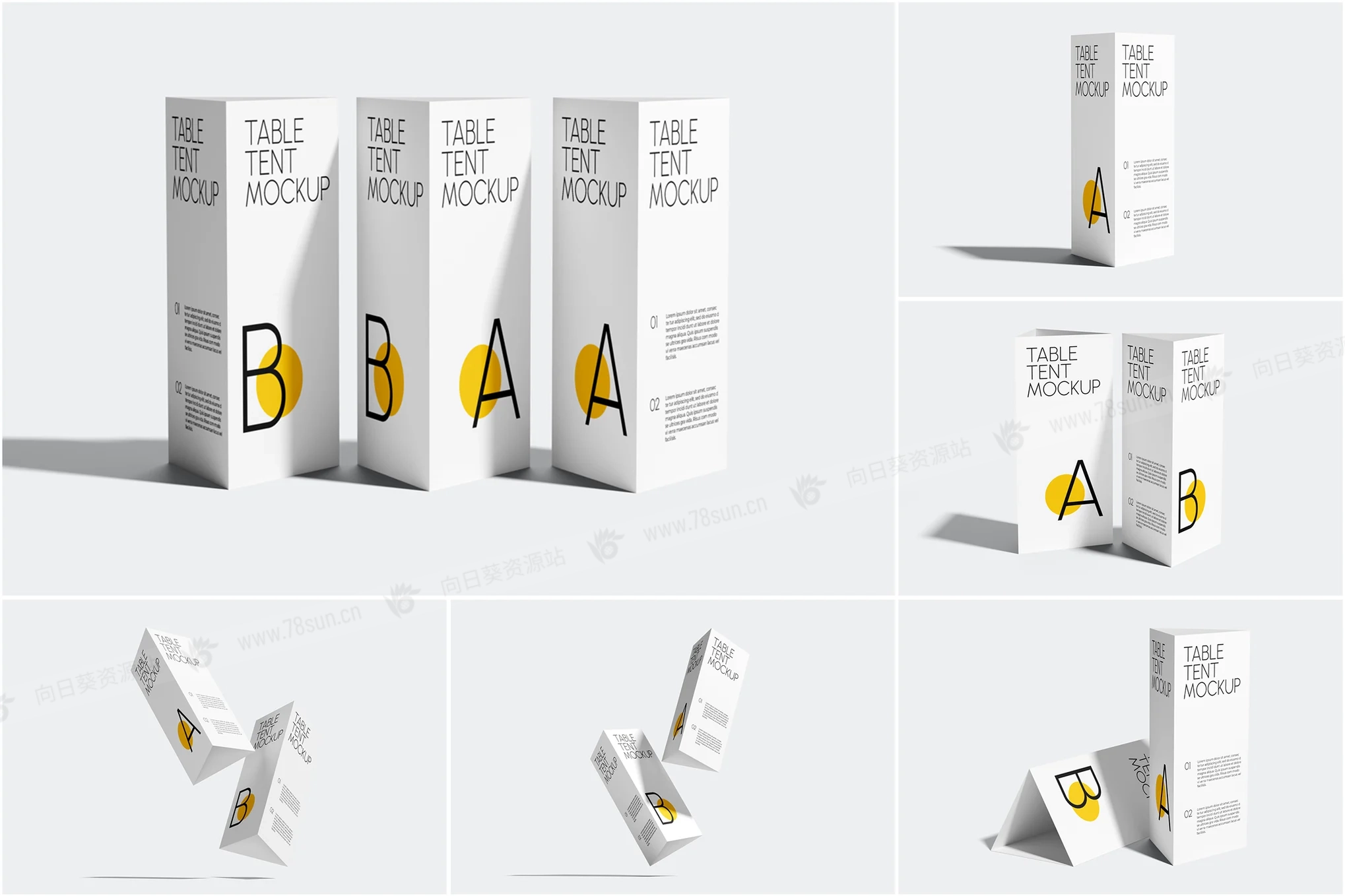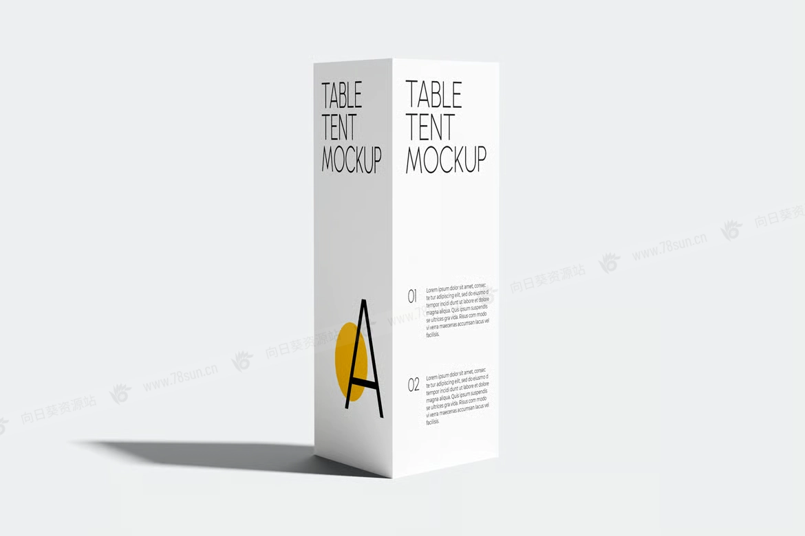 桌面帐篷卡品牌VI效果图展示智能贴图psd设计样机。桌帐通常用作包含菜单列表的餐厅餐桌上的展示品,或在通常包含信息的展览期间使用。