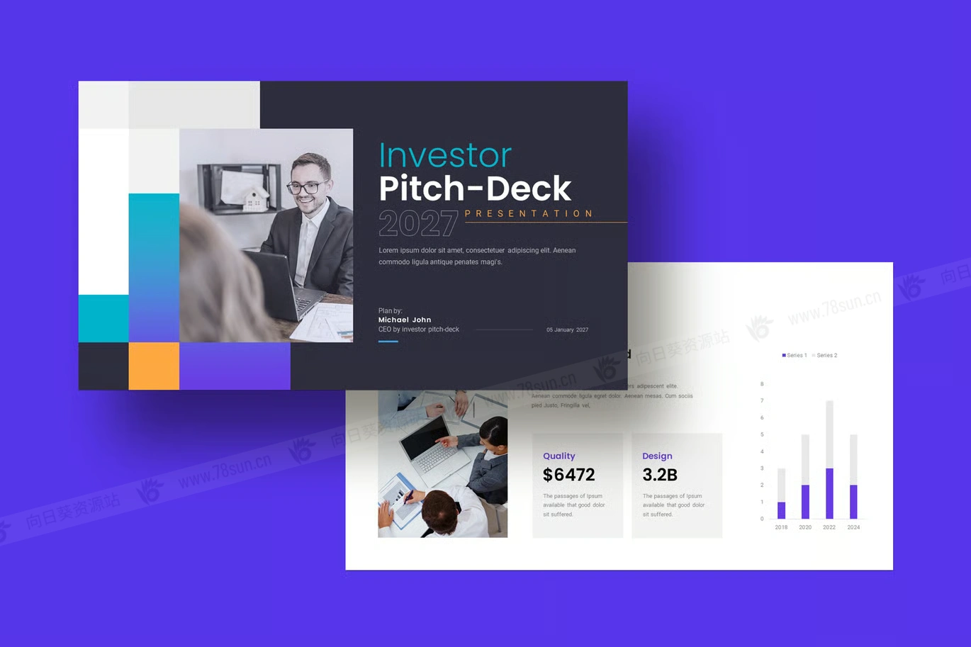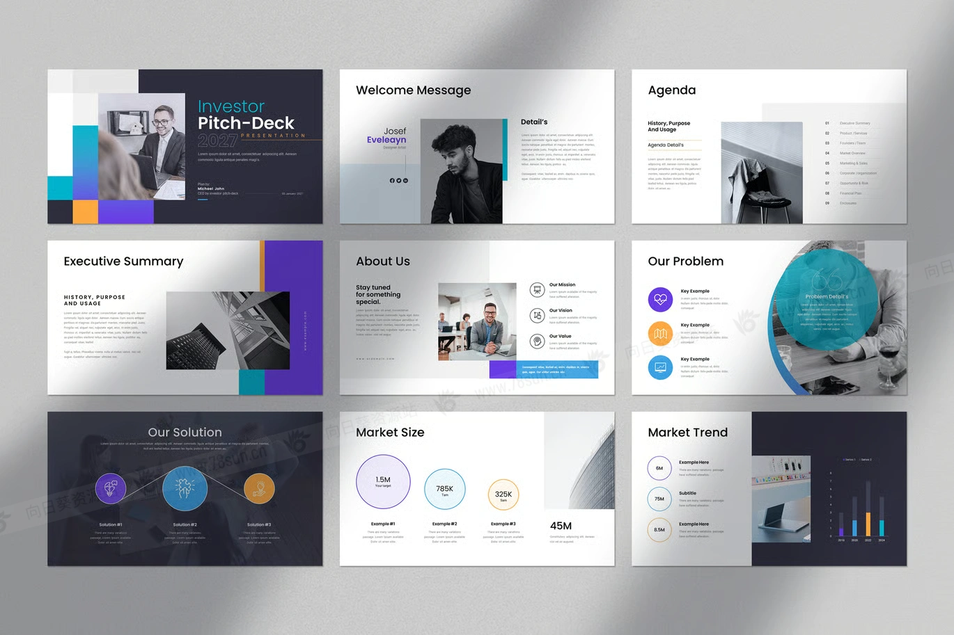 公司简介我们的服务图表统计演示PowerPoint幻灯片模板。这款色彩缤纷的投资者宣传材料 PowerPoint 设计 – 带有信息图表布局,具有大胆的色彩运用、简洁的排版和现代信息图表元素,非常适合初创公司、企业家和创新公司。它包括完全可定制的幻灯片,用于解决问题的陈述、市场规模、商业模式、牵引力、财务状况和资金需求。
