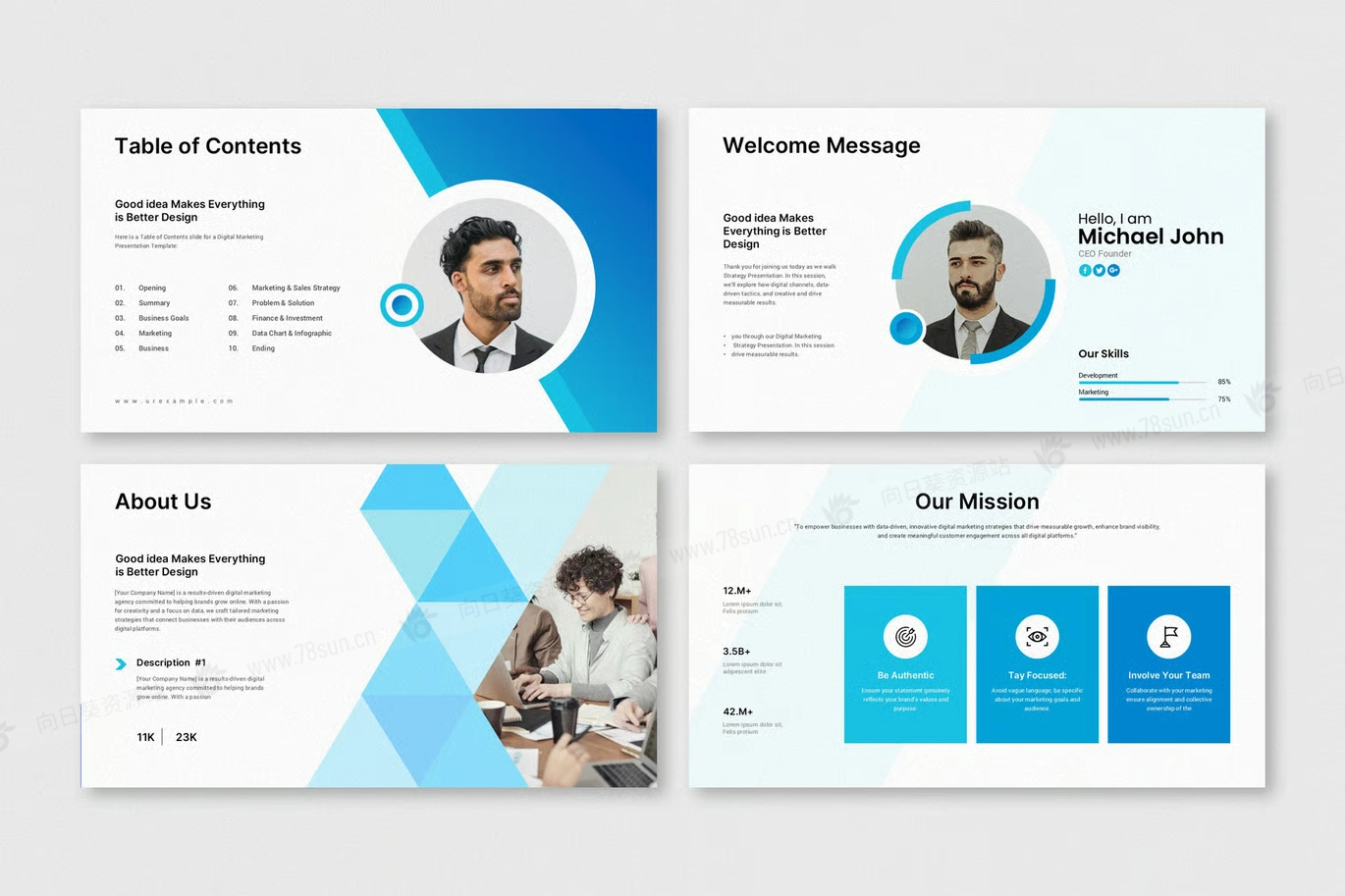 公司简介数字营销图表统计演示PowerPoint幻灯片模板。所有幻灯片均采用出色的风格设计。所有元素都易于编辑,您可以轻松更改 与您的个人或公司品牌相匹配的颜色。