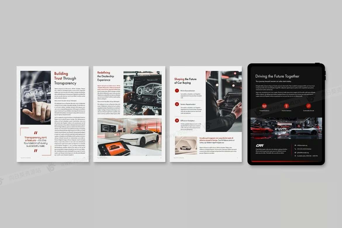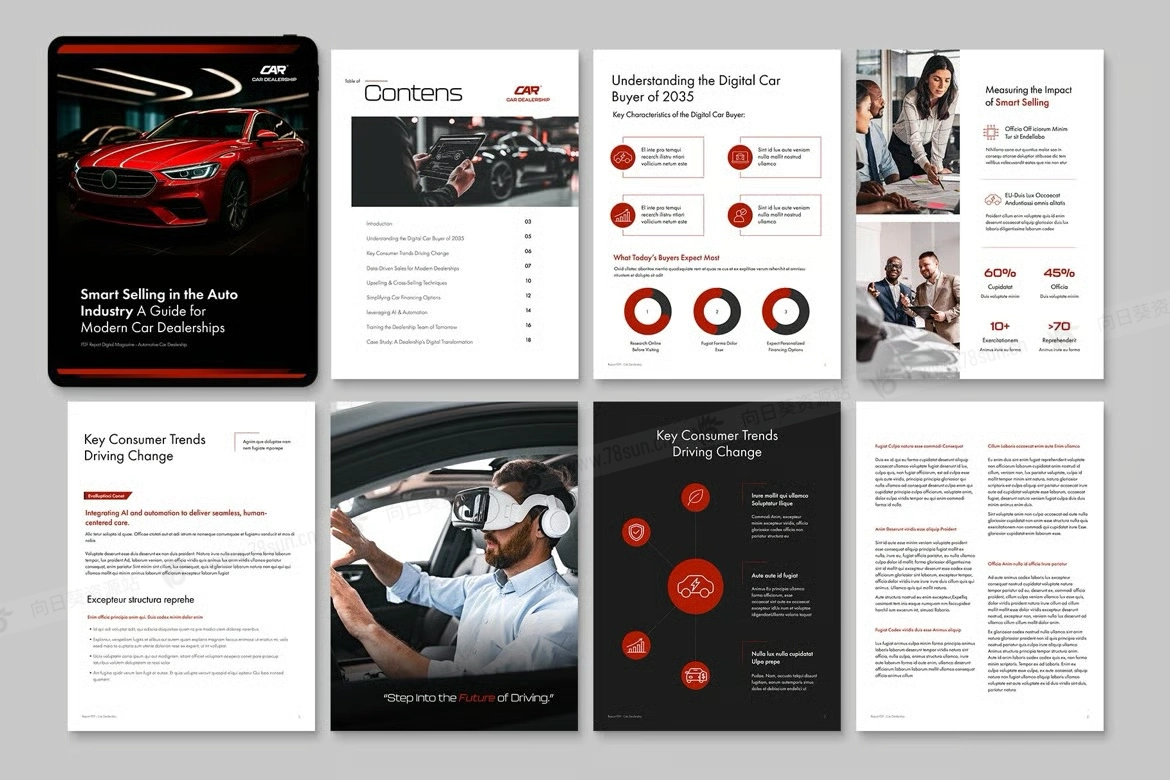 汽车数字营销电子书数字小册子杂志宣传册画册indd设计模板。该模板非常适合汽车经销商,非常适合创建引人注目的数字手册、电子书、白皮书、报告和目录。使用 Canva、InDesign IDML 和 INDD 等格式轻松提供引人入胜的演示文稿和详细的案例研究。该工具专为举办汽车博览会或推出新车型的人量身定制,可确保您的内容脱颖而出。