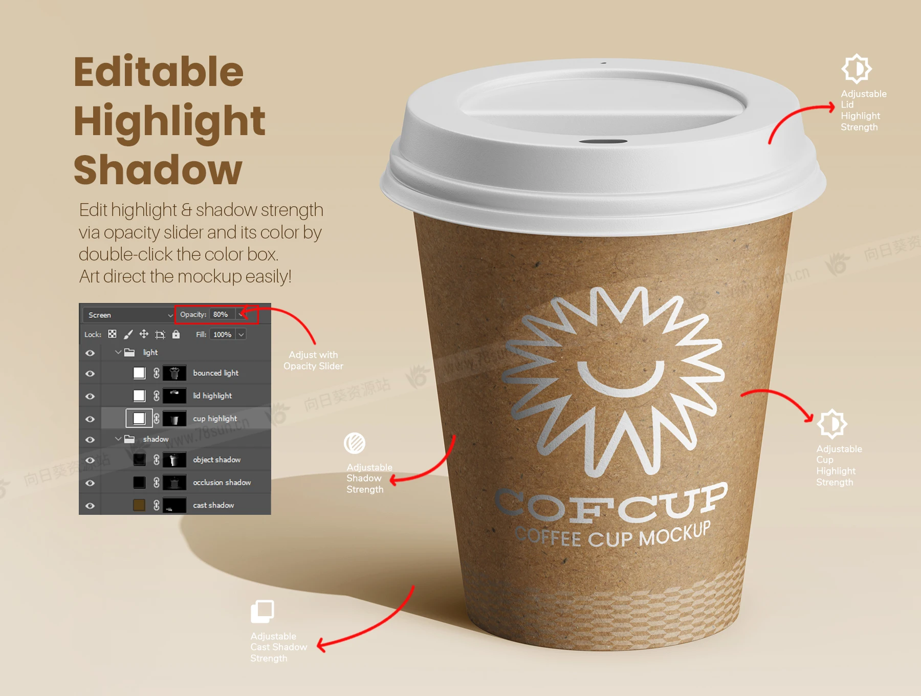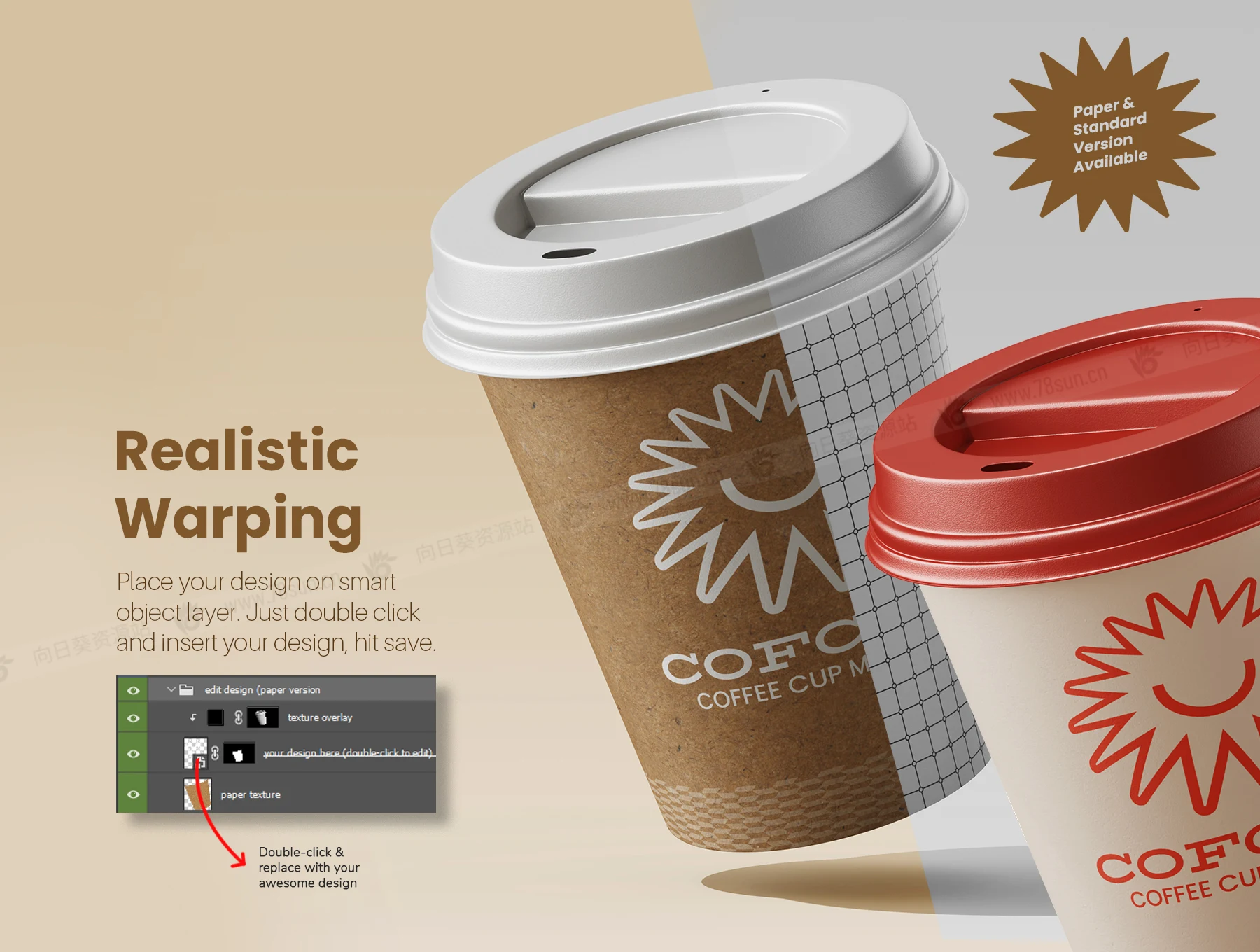 纸杯咖啡杯品牌VI效果图展示智能贴图psd设计样机,易于编辑和自定义。只需双击并将您的设计放置在智能对象图层上,即可看到它们真实地扭曲到模型上,无需额外工作。您也可以选择使用牛皮纸或标准纸。轻松更改盖子颜色,只需单击颜色框并选择您的颜色。模型也与背景分开,如果您想将它们组合到您的品牌演示中,可以轻松使用。通过使用不透明度滑块来调整高光和阴影层强度的能力。