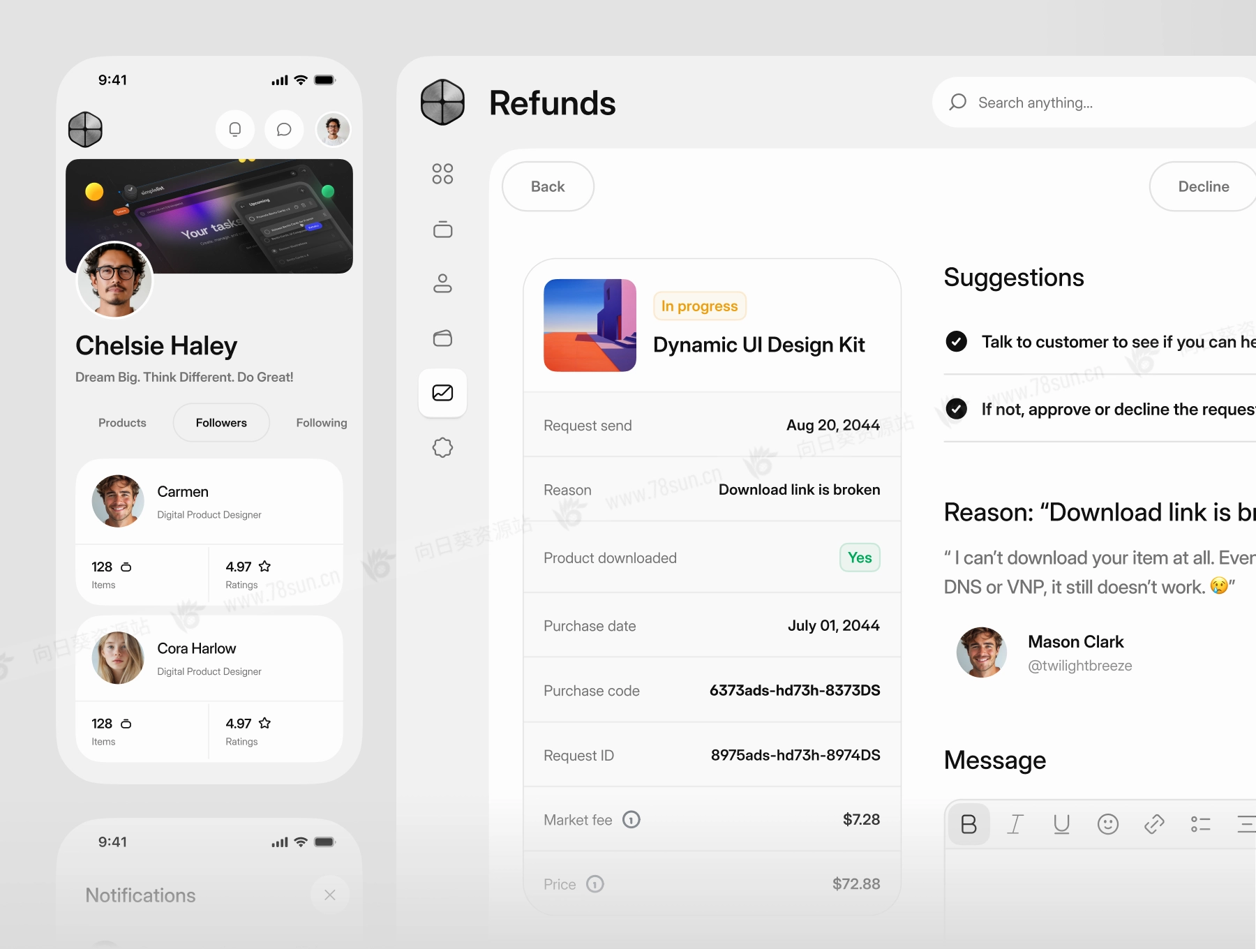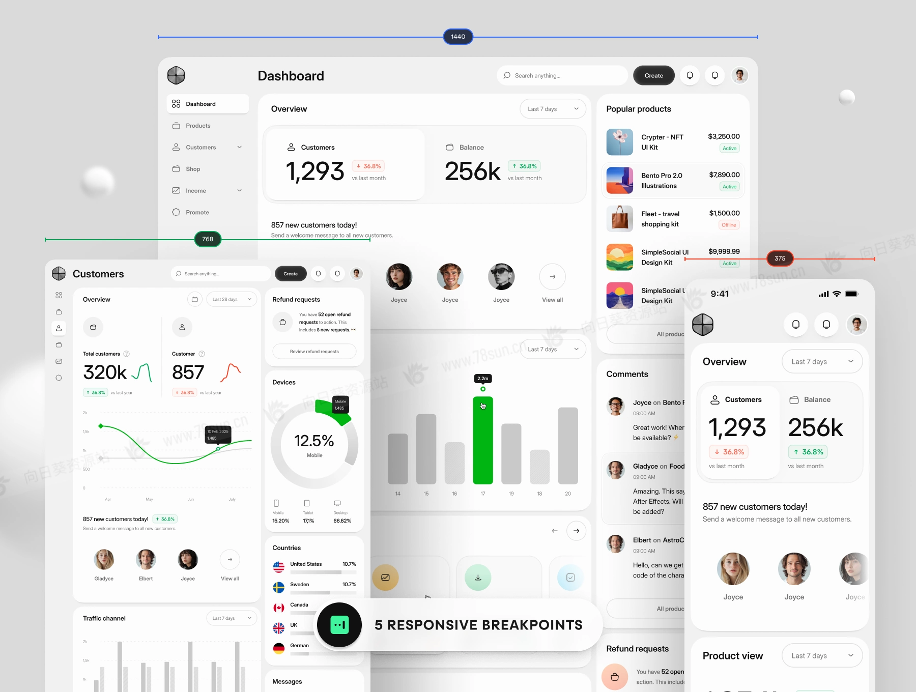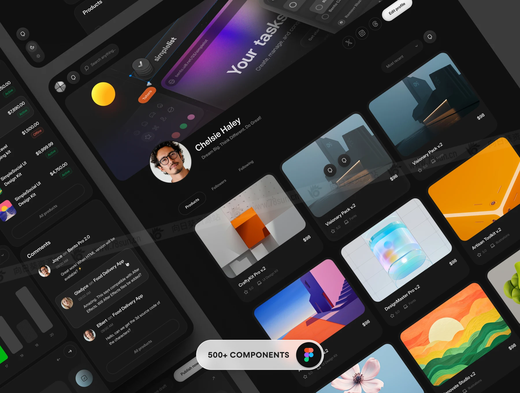 这个强大的软件包包括 490 个预制模板和超过 500+ 个组件,所有这些都完全响应并使用 Figma 自动布局构建,可实现无缝定制。探索各种仪表板类型,包括概述、产品、促销、时间表、登录、注册、报表、收入、通知、消息中心、评论、帐户设置、退款、定价表、联盟中心和商店。