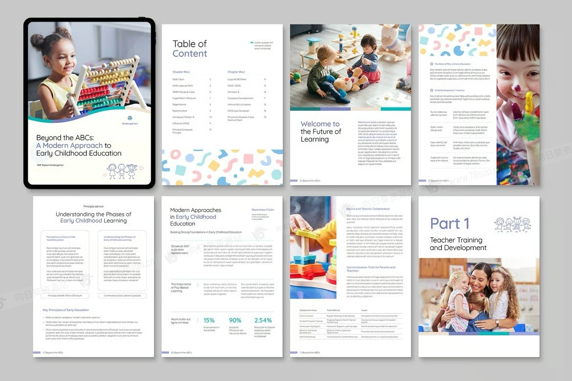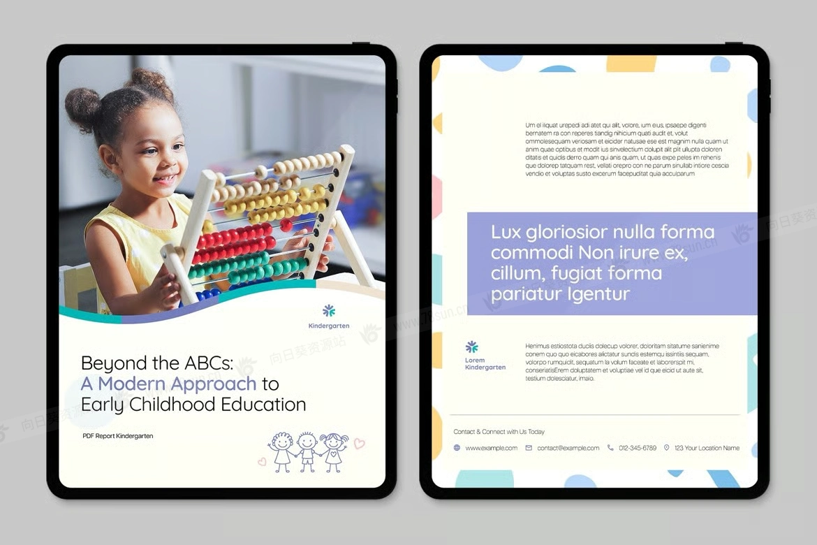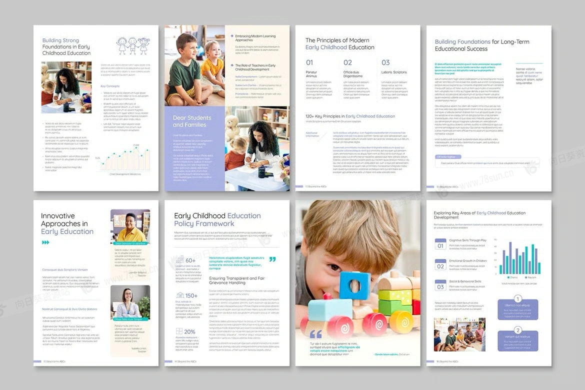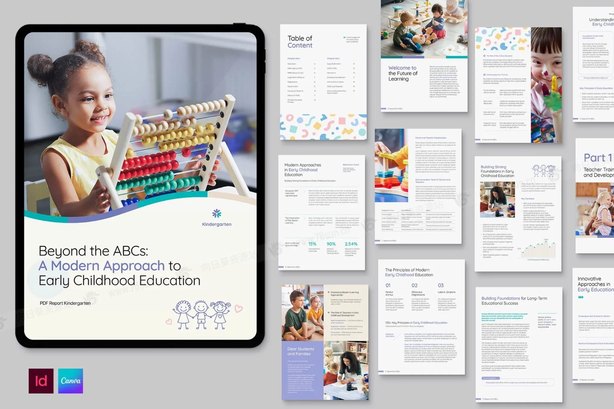 学校教育儿童幼儿园电子书数字小册子杂志宣传册画册indd设计模板。此可编辑的 Canva、InDesign IDML 和 INDD 设计可兼作小册子、小册子、传单、招股说明书、小册子、目录或 PDF 电子书。轻松自定义字体、颜色、照片;导出打印就绪或在线导出。