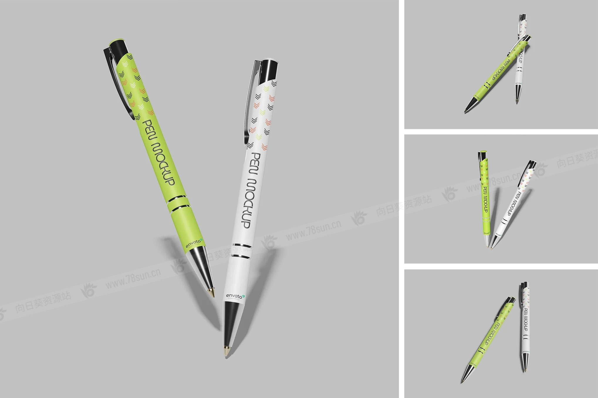 圆珠笔品牌VI效果图展示智能贴图psd设计样机。该模型包括 4 个带有分层良好 PSD 文件,并且该模型还使用智能对象功能,这意味着您可以在几秒钟内轻松快速地使用自己的设计更改当前设计。