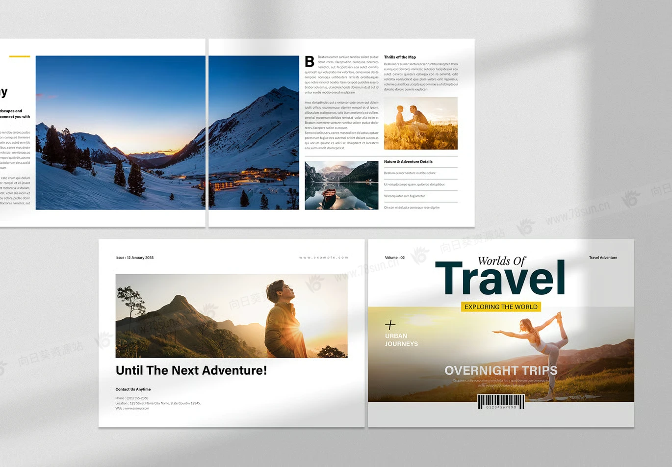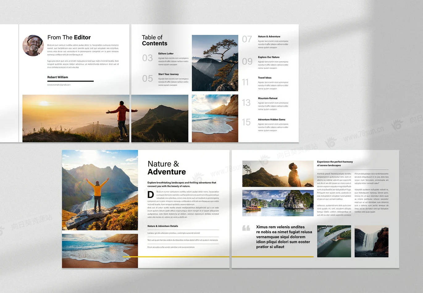 风景旅游杂志模板/干净创意旅游杂志模板。这种布局适用于任何项目目的,非常易于使用和定制。自定义它并用您自己的徽标和品牌颜色替换徽标和品牌颜色很容易,因为我们设计了这个模板,以尽可能灵活地适应各种客户。