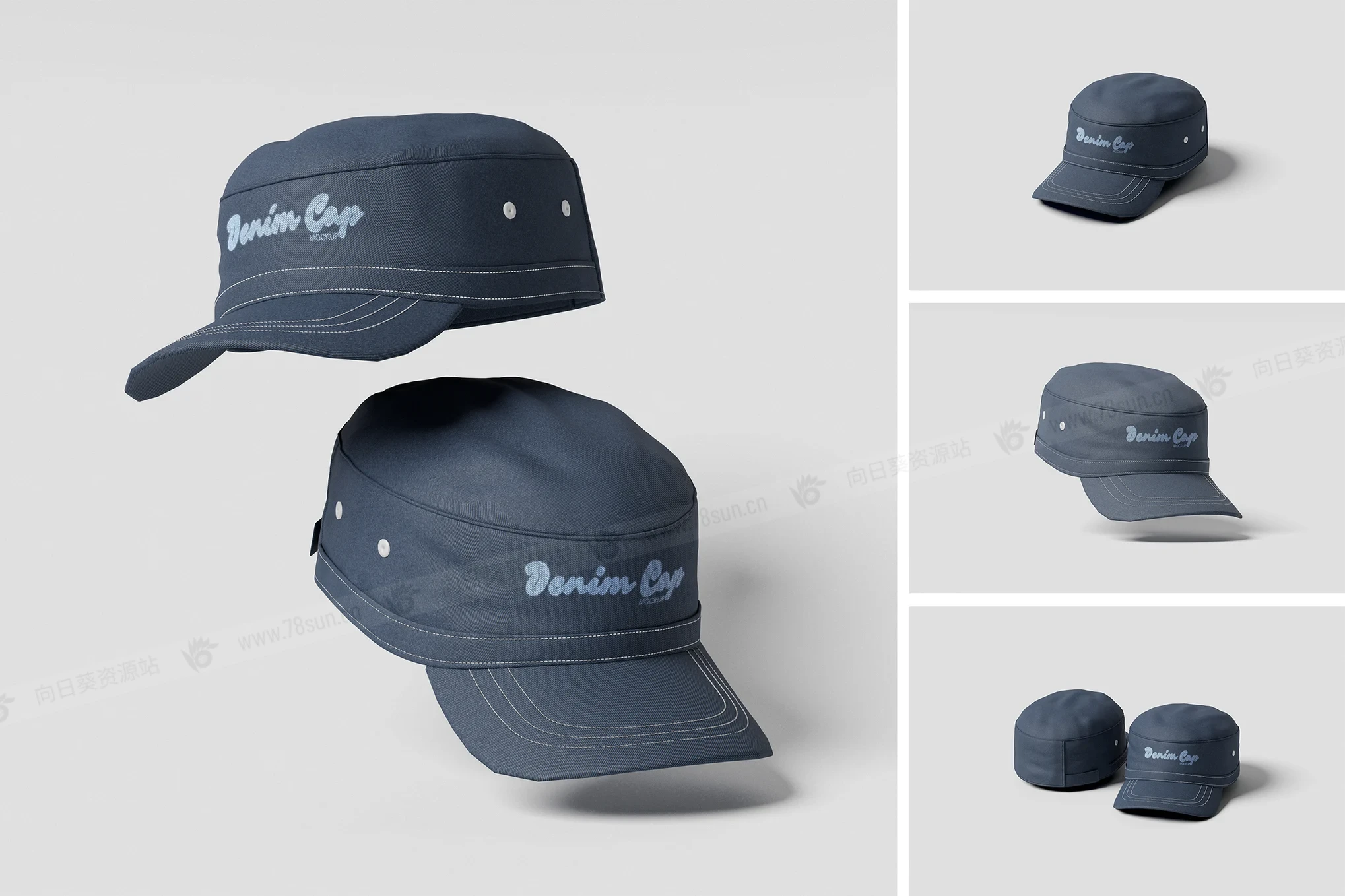 帽檐帽子品牌VI效果图展示智能贴图psd设计样机。该模型包括 4 个带有分层良好 PSD 文件,并且该模型还使用智能对象功能,这意味着您可以在几秒钟内轻松快速地使用自己的设计更改当前设计。