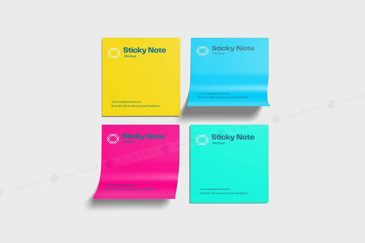 便签品牌VI效果图展示智能贴图psd设计样机。该模型包括 4 个带有分层良好 PSD 文件,并且该模型还使用智能对象功能,这意味着您可以在几秒钟内轻松快速地使用自己的设计更改当前设计。