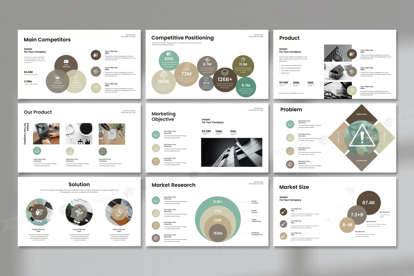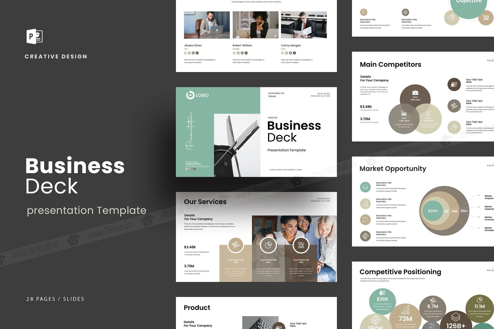 公司简介业务工作报告商务演示PowerPoint幻灯片模板,模板包含 28 张有用的商业计划和流程幻灯片,例如公司介绍、市场分析、产品和服务、竞争策略、营销计划、销售方法、投资、组织和管理团队、社交媒体营销等等