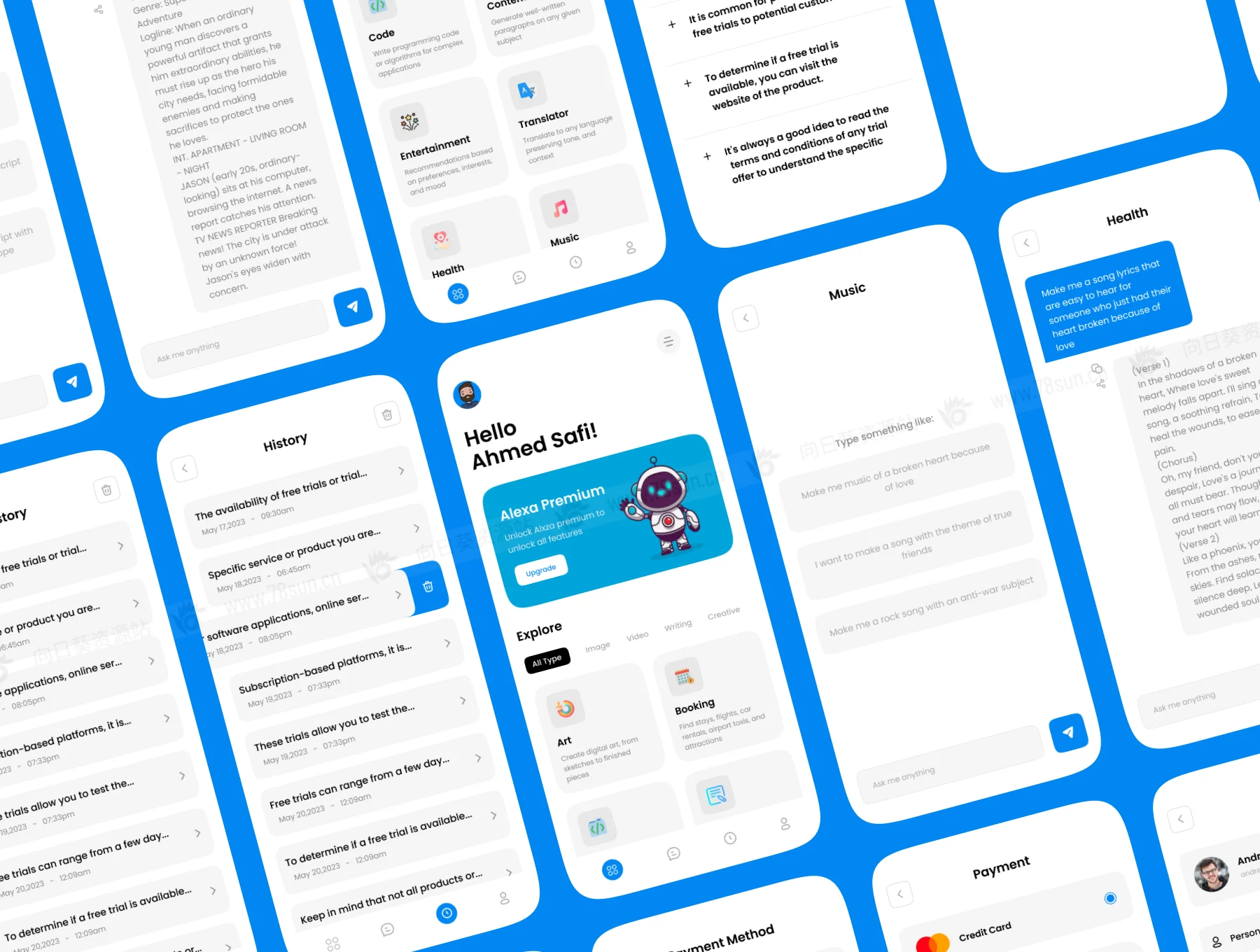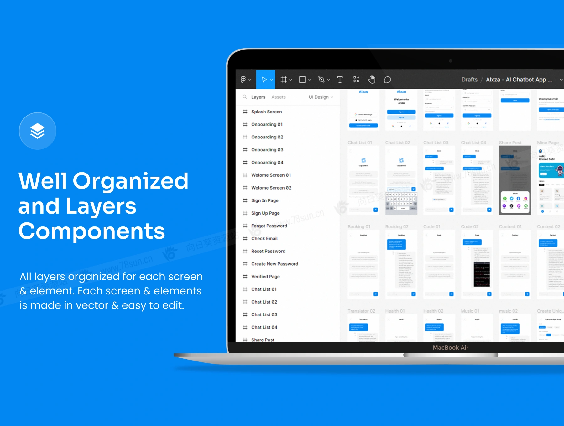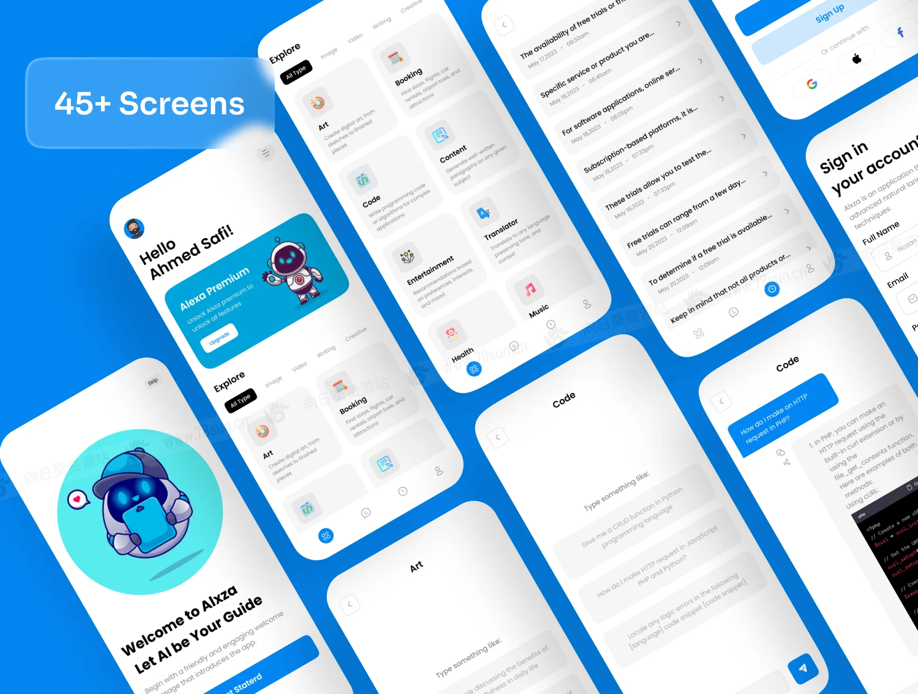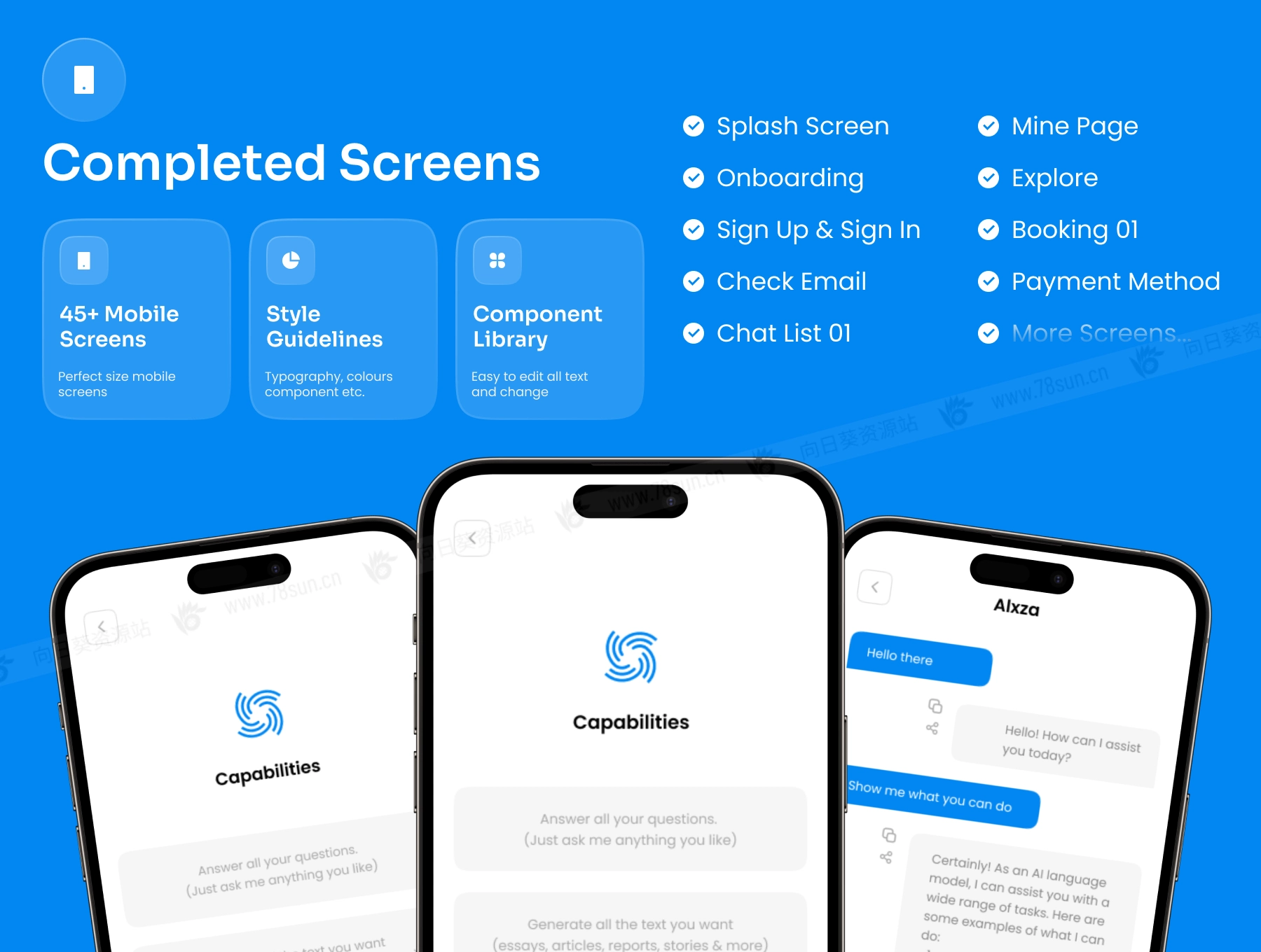 AI聊天机器人分类列表app ui界面设计sketch xd fig源文件模板,包含 45+ 个高品质屏幕,与专为 iOS 和 Android 设计的 Figma 完全兼容。