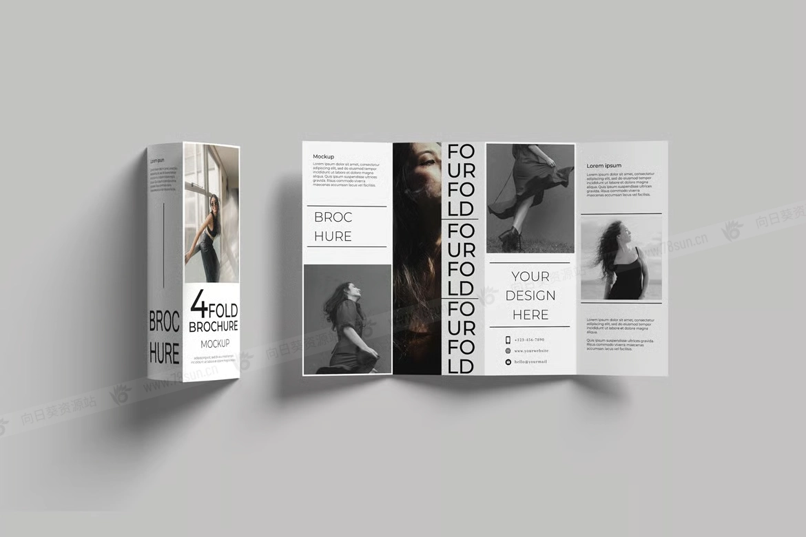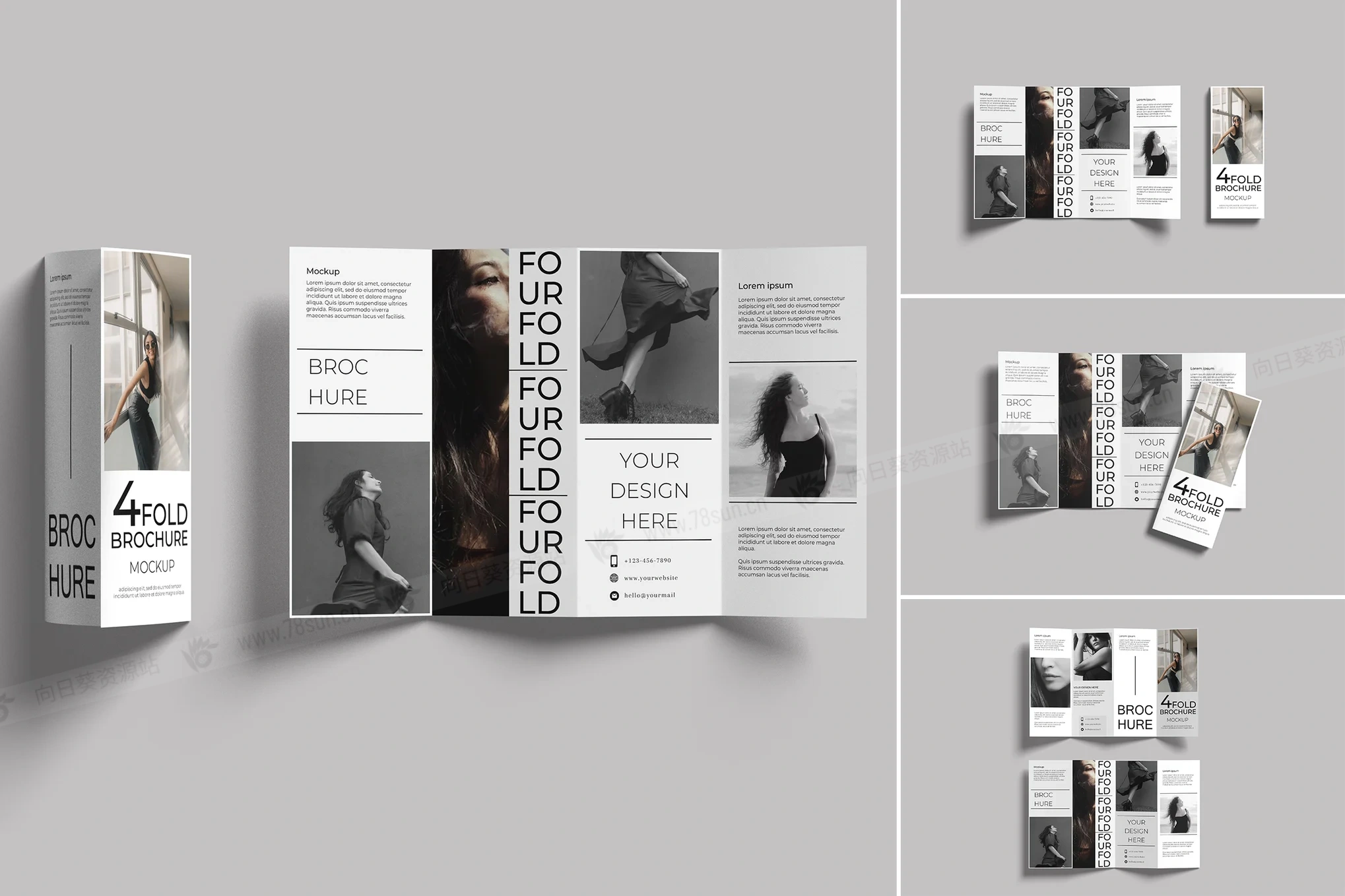 四折页产品宣传小册子VI效果图展示智能贴图psd设计样机。此模型文件使用智能对象功能,可帮助您在几秒钟内更改设计(包括帮助文件)。
