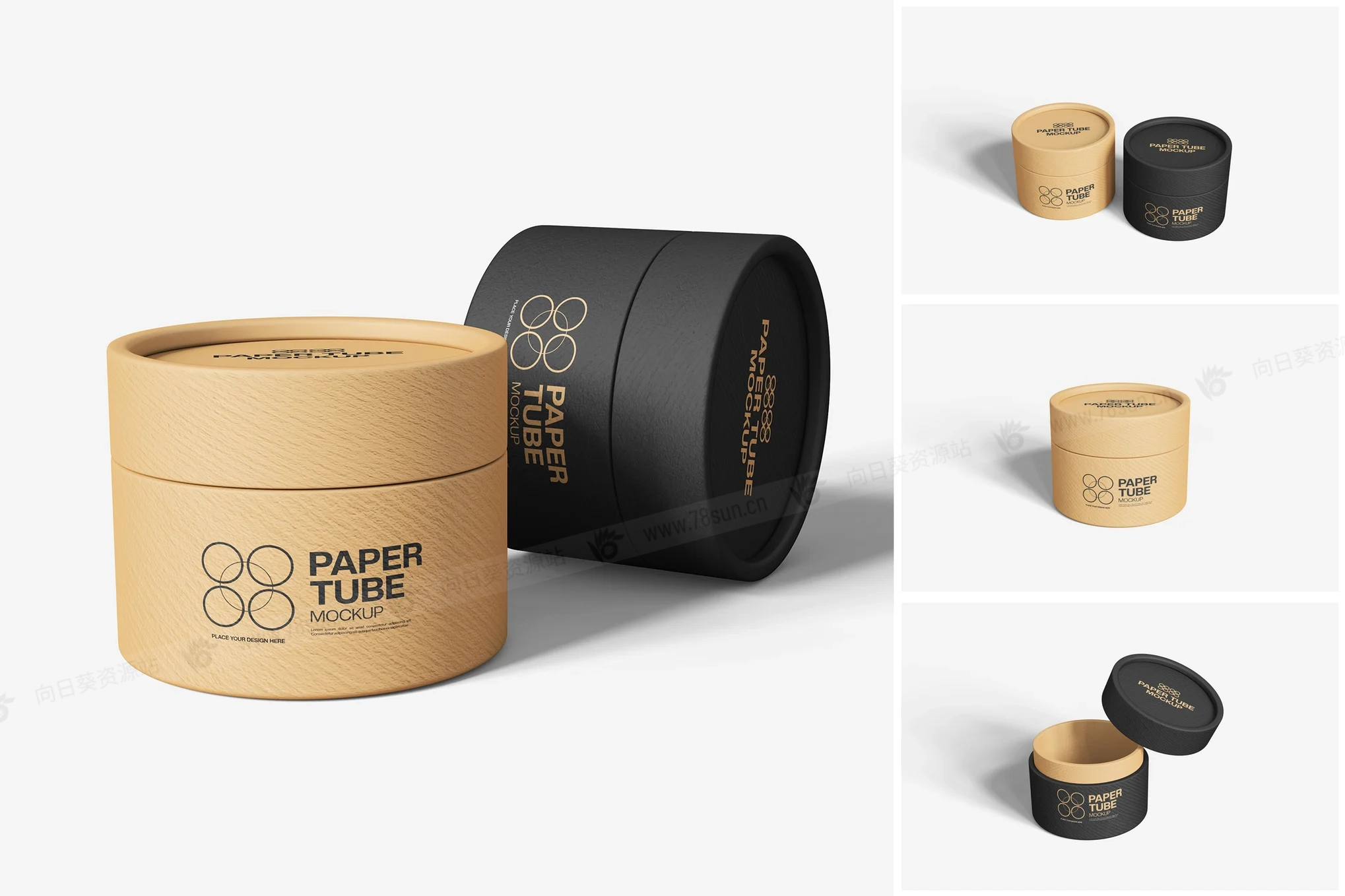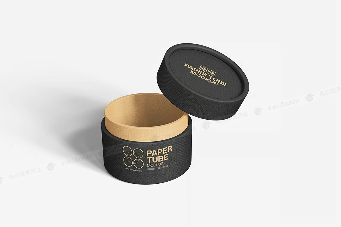 食品化妆品纸管品牌VI效果图展示智能贴图psd设计样机。使用智能对象轻松替换您的设计,双击智能图层,复制并粘贴您的图稿,保存即可完成!
