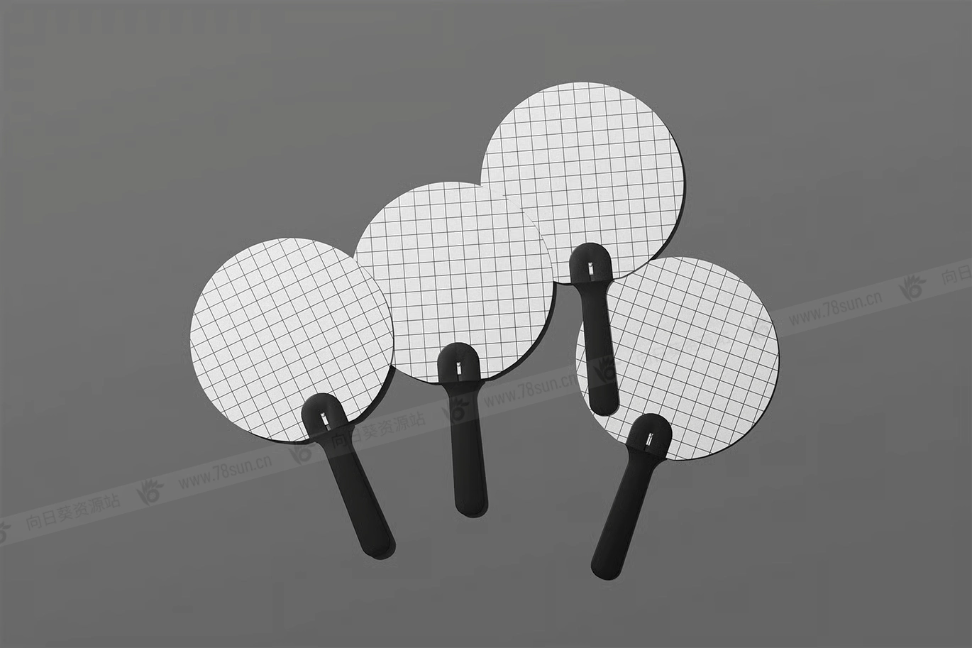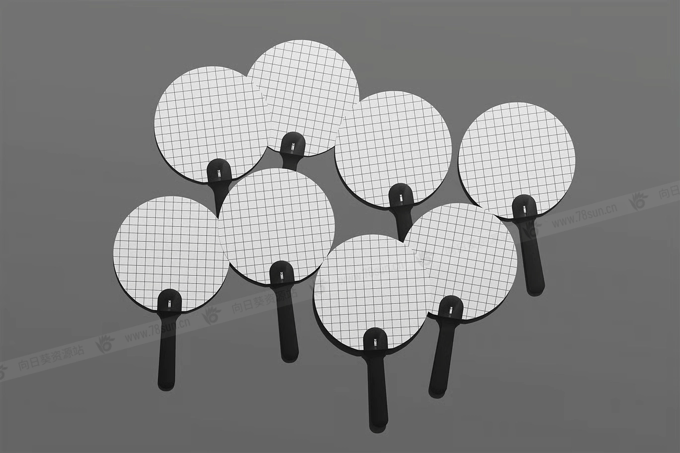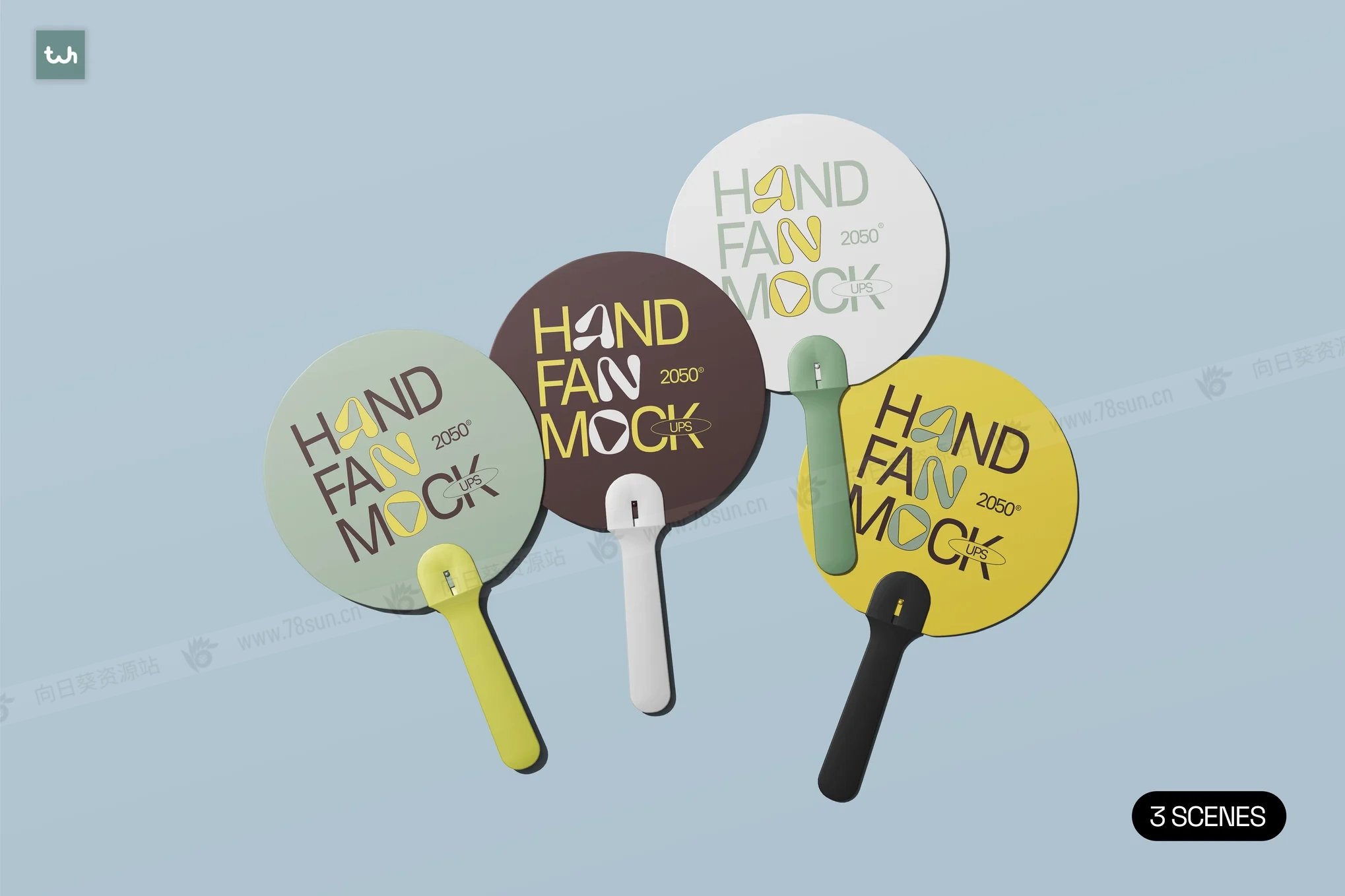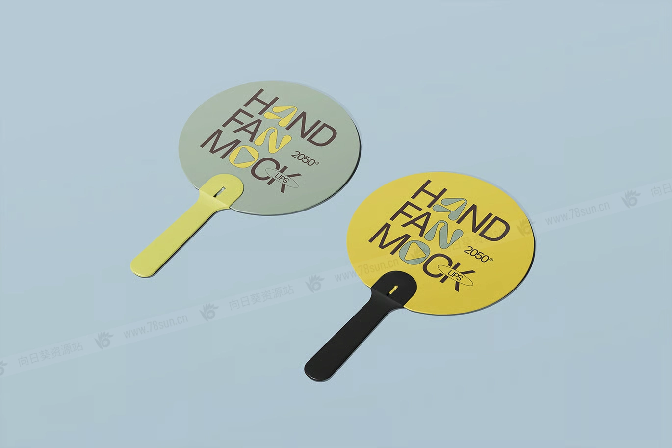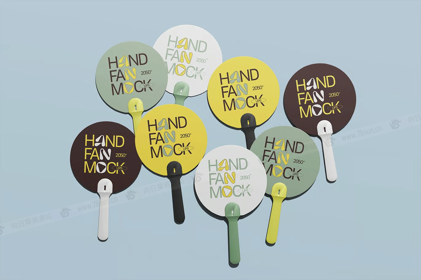 圆形扇子塑料扇品牌VI效果图展示智能贴图psd设计样机。只需单击一下,您就可以使用此模型模板,它分层良好且随时可用。