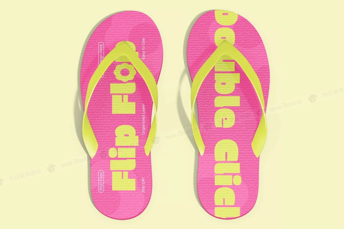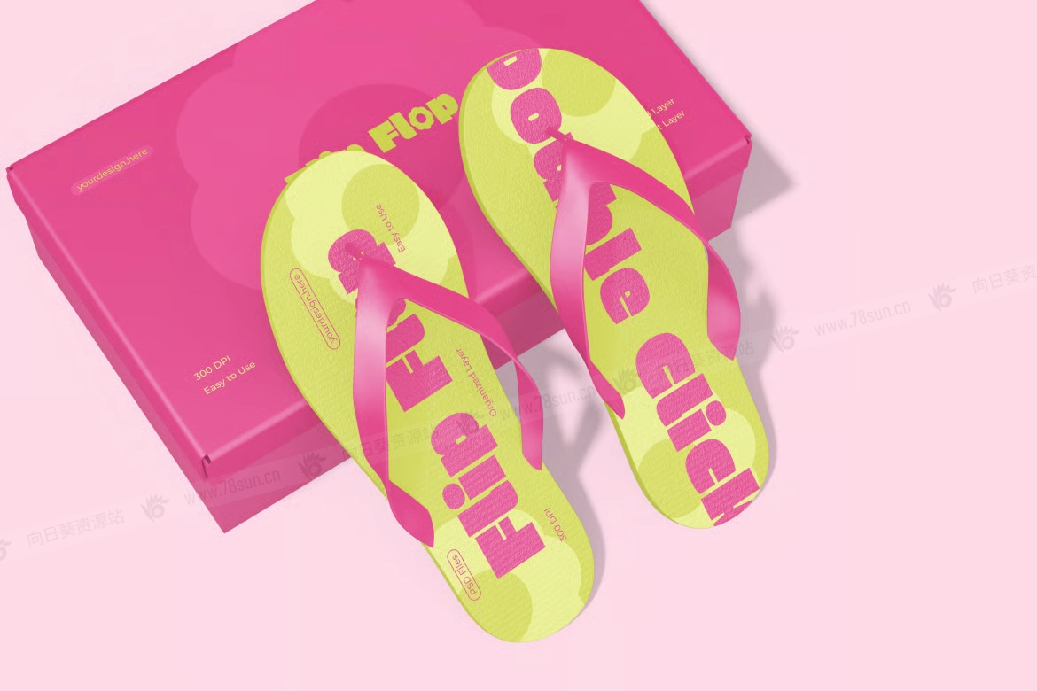 人字拖夹脚拖鞋凉鞋品牌VI效果图展示智能贴图psd设计样机,