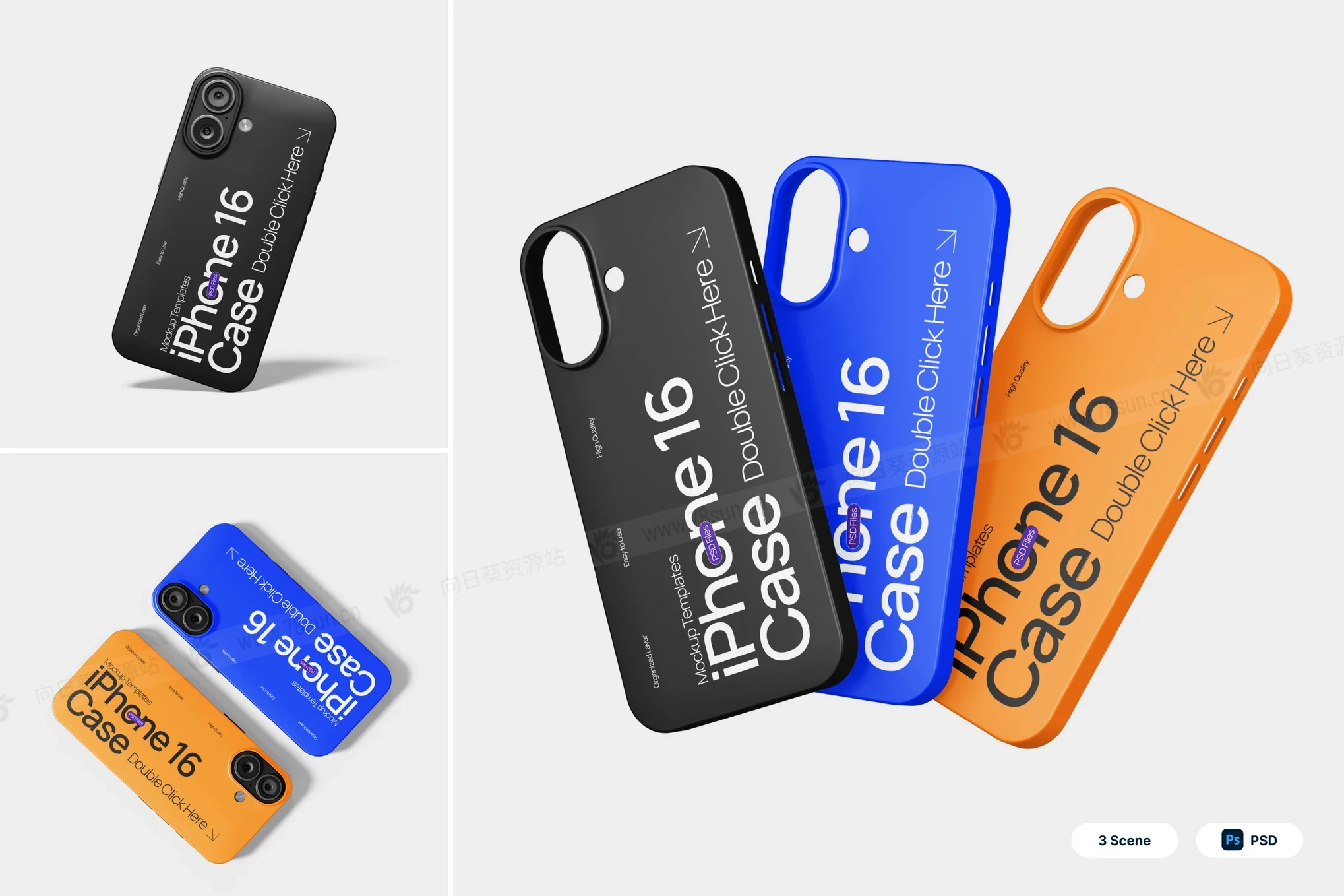 iPhone16苹果手机壳品牌VI效果图展示智能贴图psd设计样机,