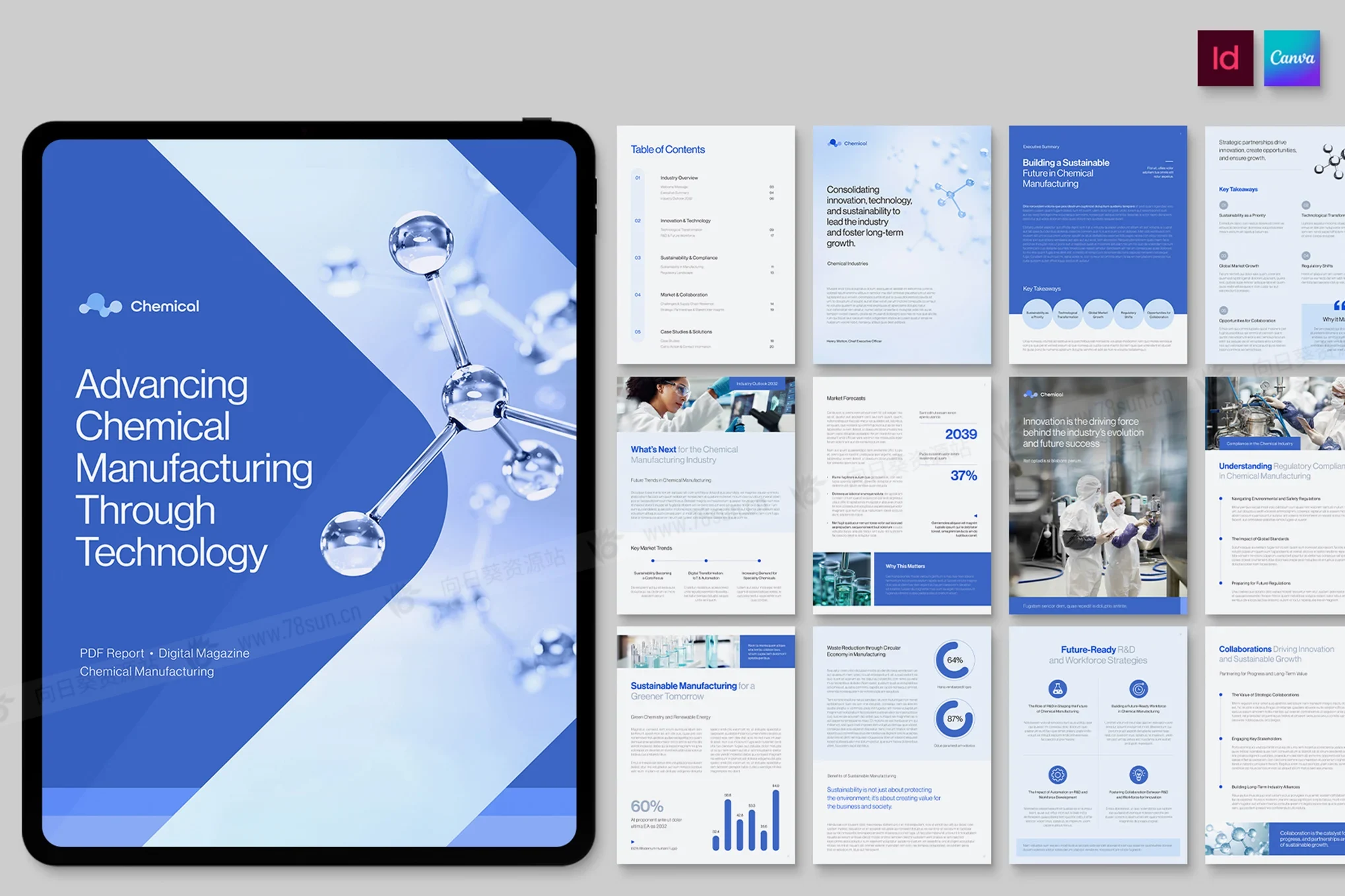 此项目采用 Canva、InDesign、IDML 和 InDesign INDD 格式。请注意,照片仅用于演示目的,不包含在最终下载中。
