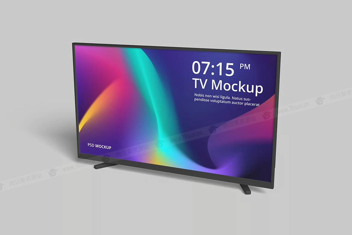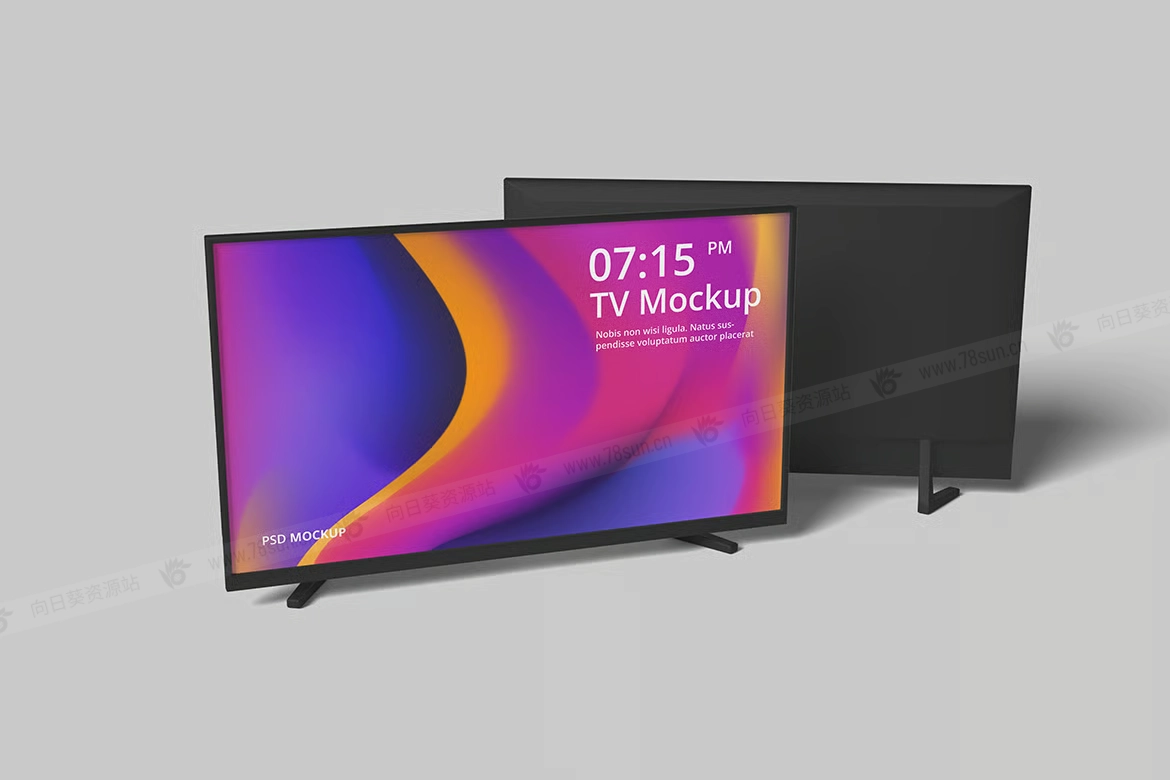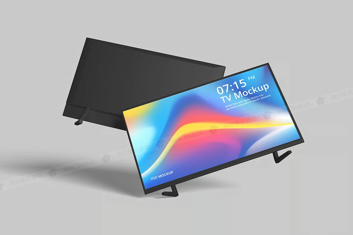 Led智能电视机品牌VI效果图展示智能贴图psd设计样机。这些模型文件使用智能对象功能,可帮助您在几秒钟内更改设计。