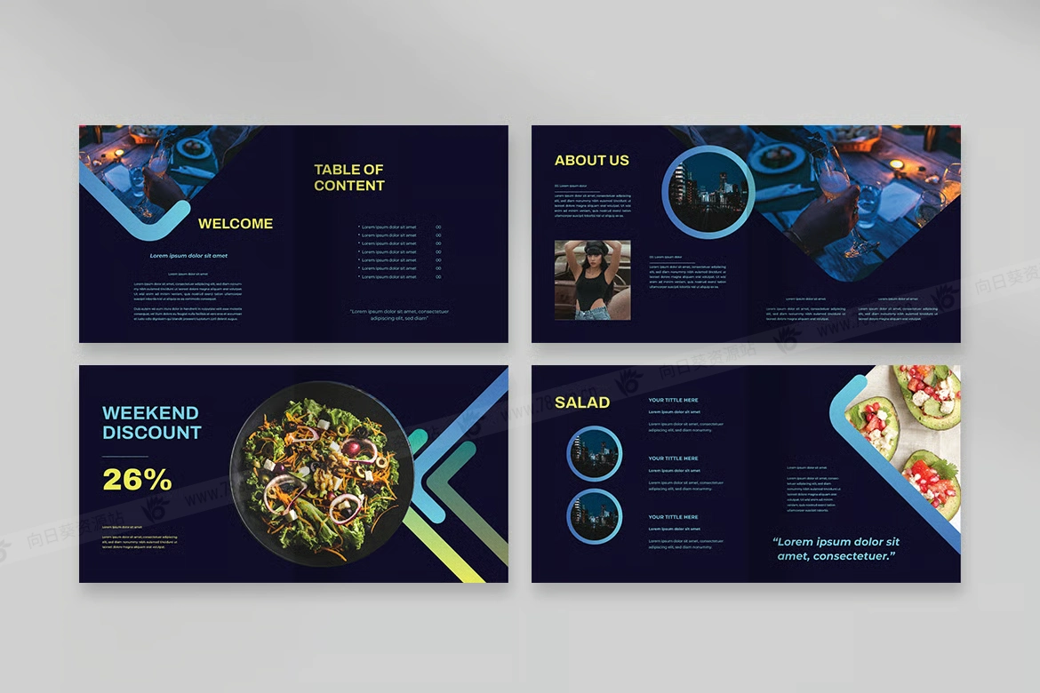 方形食品美食餐厅菜单烹饪指南小册子杂志宣传册画册psd ai设计模板,