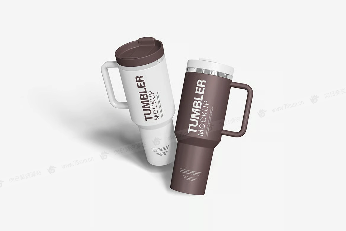 保温杯水壶水瓶品牌VI效果图展示智能贴图psd设计样机。使用智能对象轻松替换您的设计,双击智能图层,复制并粘贴您的图稿,保存即可完成!